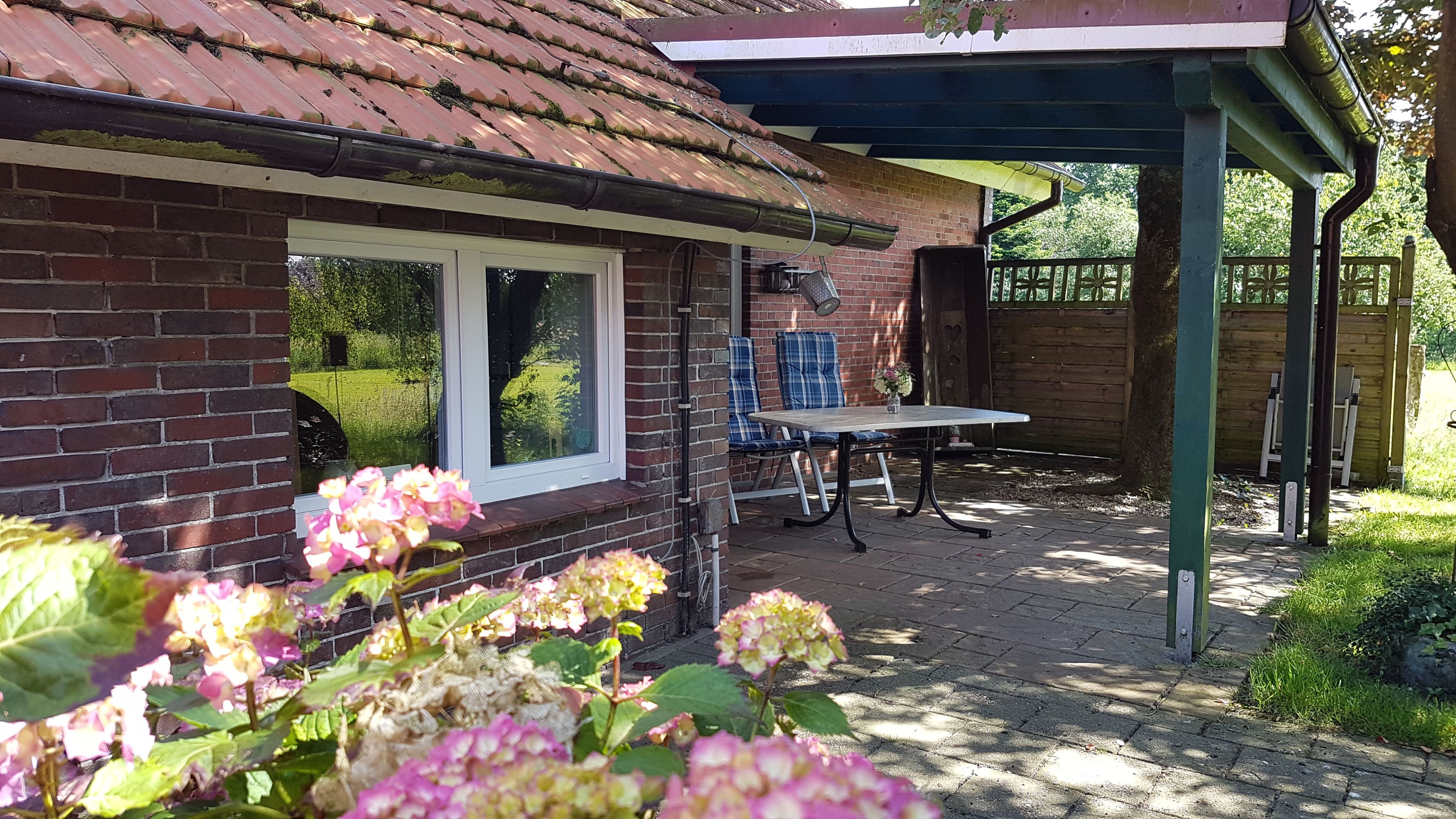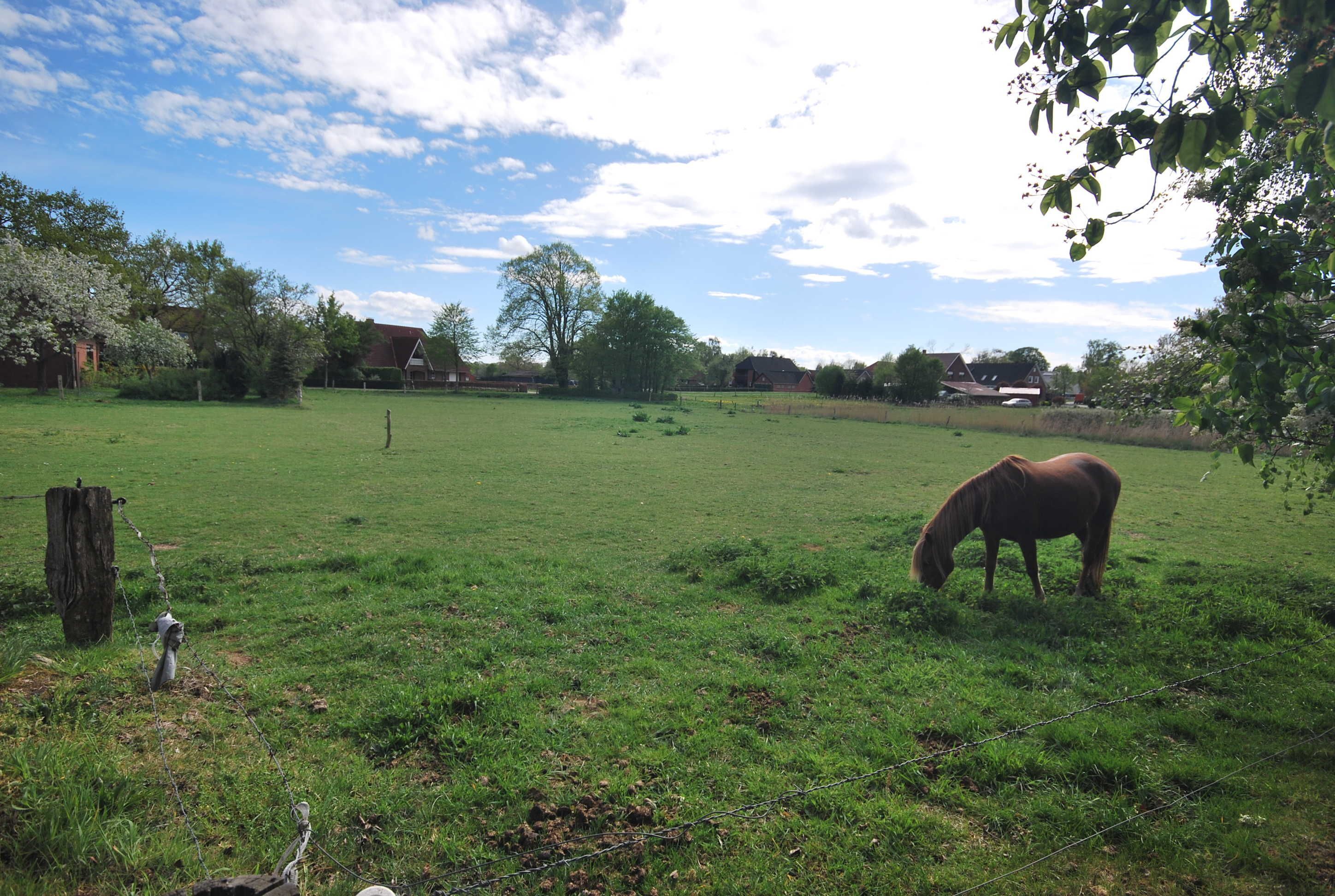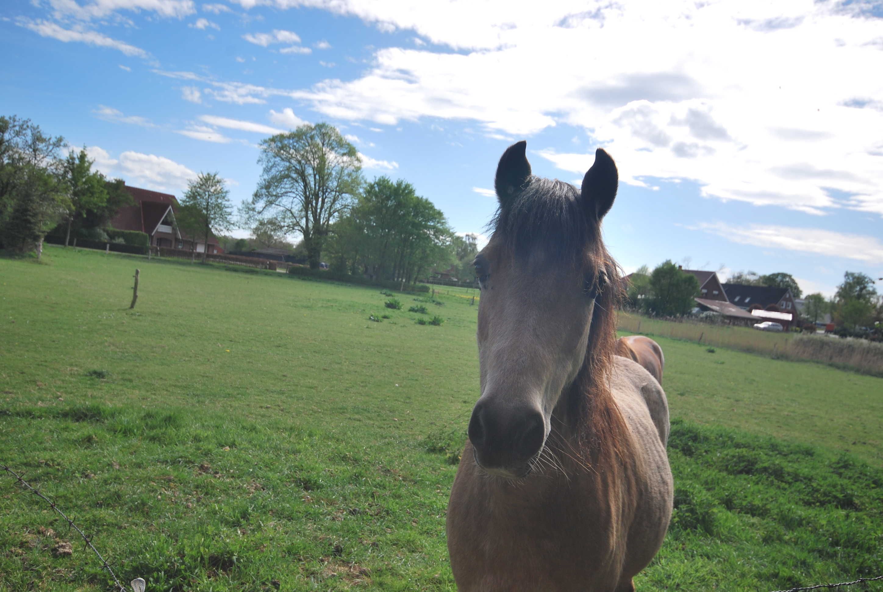 Ferienhaus mit Blick auf Pferdeweiden und die wunderschöne ostfriesische Landschaft.