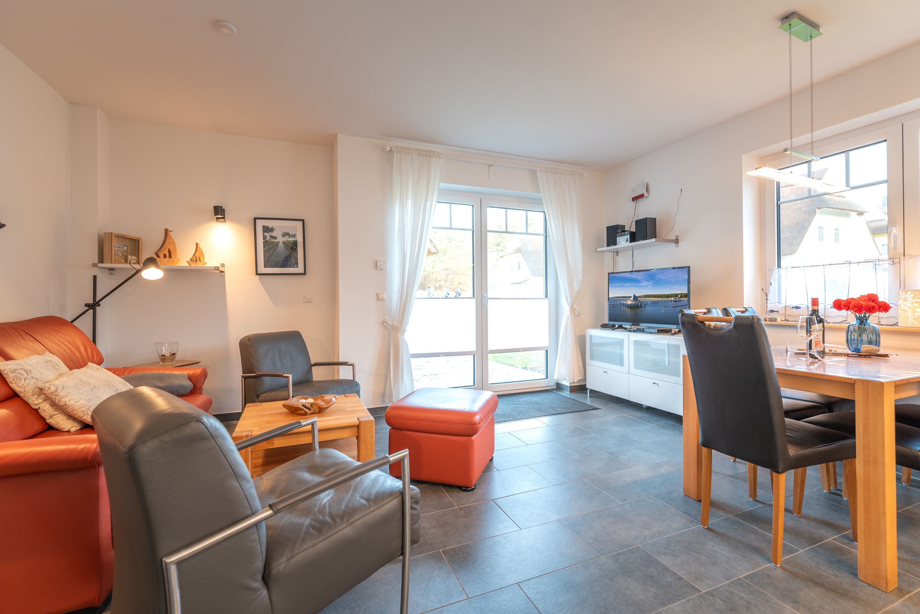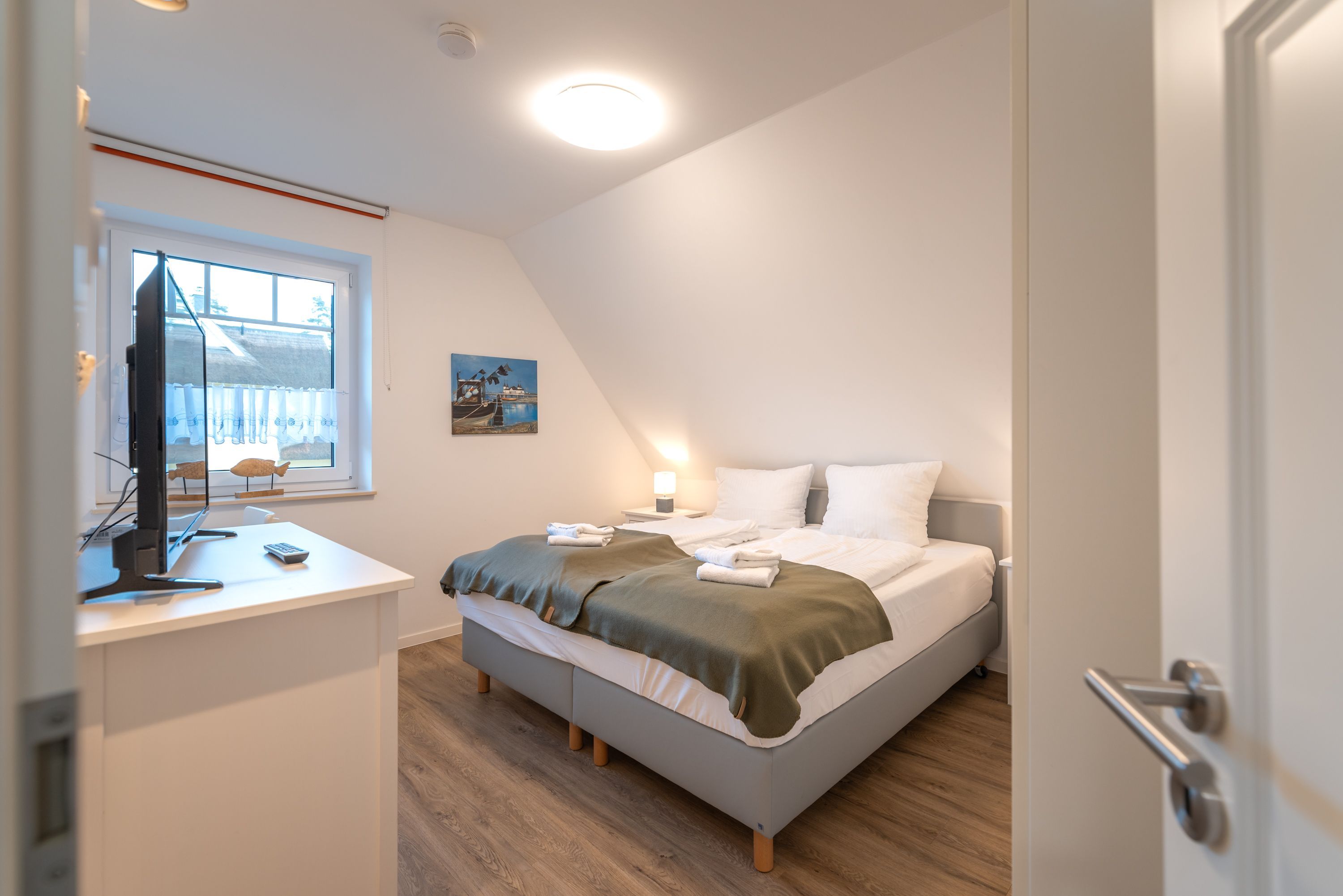 Das Ferienhaus Ankerplatz befindet sich im idyllischen Fischerdorf Zirchow und bietet auf einer Fläche von ca. 68 m² Platz für 4 Personen und ein Kleinkind. Die Doppelhaushälfte verfügt über einen offenen Wohnbereich mit Zugang zur Terrasse, 2 gemütliche Schlafzimmer und 2 moderne Badezimmer - eins davon mit Sauna. Ein ausgebauter Dachboden kann beispielsweise als Spielzimmer für Kinder genutzt werden.
