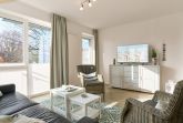 Diese freundliche Ferienwohnung im 1. OG mit bodentiefen Fenstern in Wohn- und Schlafzimmer verfügt über einen traumhaften Südwest-Balkon mit Blick ins Grüne. Nur wenige Meter sind es, bis Sie den gegenüberliegenden Sandstrand erreichen. In wenigen Gehminuten erreichen Sie die Dünenmeile, mit ihren schönen Cafés, Restaurants, Bäckereien und Geschäften.