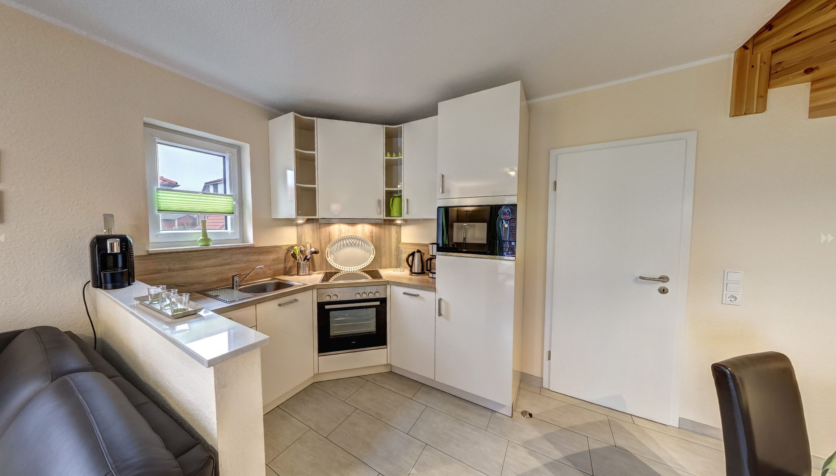 Anschließend an das Wohnzimmer befindet sich eine komplett eingerichtete Küche. Auch erwartet Sie hier eine Terrasse. Genießen Sie beim Frühstücken oder Relaxen die Sonnenstrahlen und die frische Nordseeluft! Aber auch außerhalb der Hautsaison ist das Haus ein idealer Ausgangspunkt für Ihre Erkundungen an der Nordseeküste.