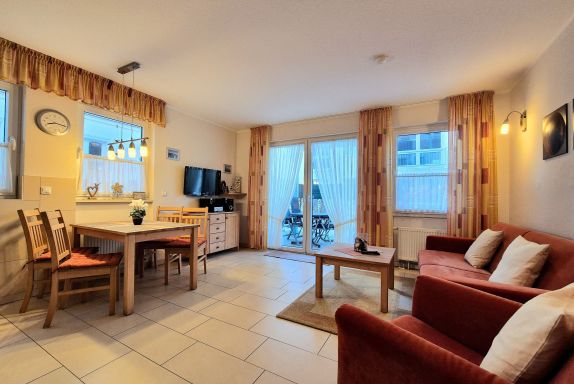 • WOHNEN: Wohnraum mit bequemer Schlafcouch, Flachbild-TV