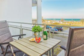 Ein besonderes Highlight dieser Wohnung ist der Balkon, der nicht nur einen beeindruckenden Blick auf das Meer bietet, sondern auch einen einzigartigen Rückzugsort für ungestörte Entspannung darstellt. Da er leicht zurückversetzt gebaut ist, genießen Sie hier mehr Privatsphäre als in anderen Apartments. Lassen Sie sich von der feuerroten Abendsonne verzaubern, die im Sommer direkt im Meer versinkt und den Himmel in ein spektakuläres Farbspiel taucht ein unvergesslicher Anblick! Der Balkon ist mit einem Tisch und Stühlen ausgestattet und lädt zum Verweilen ein.
