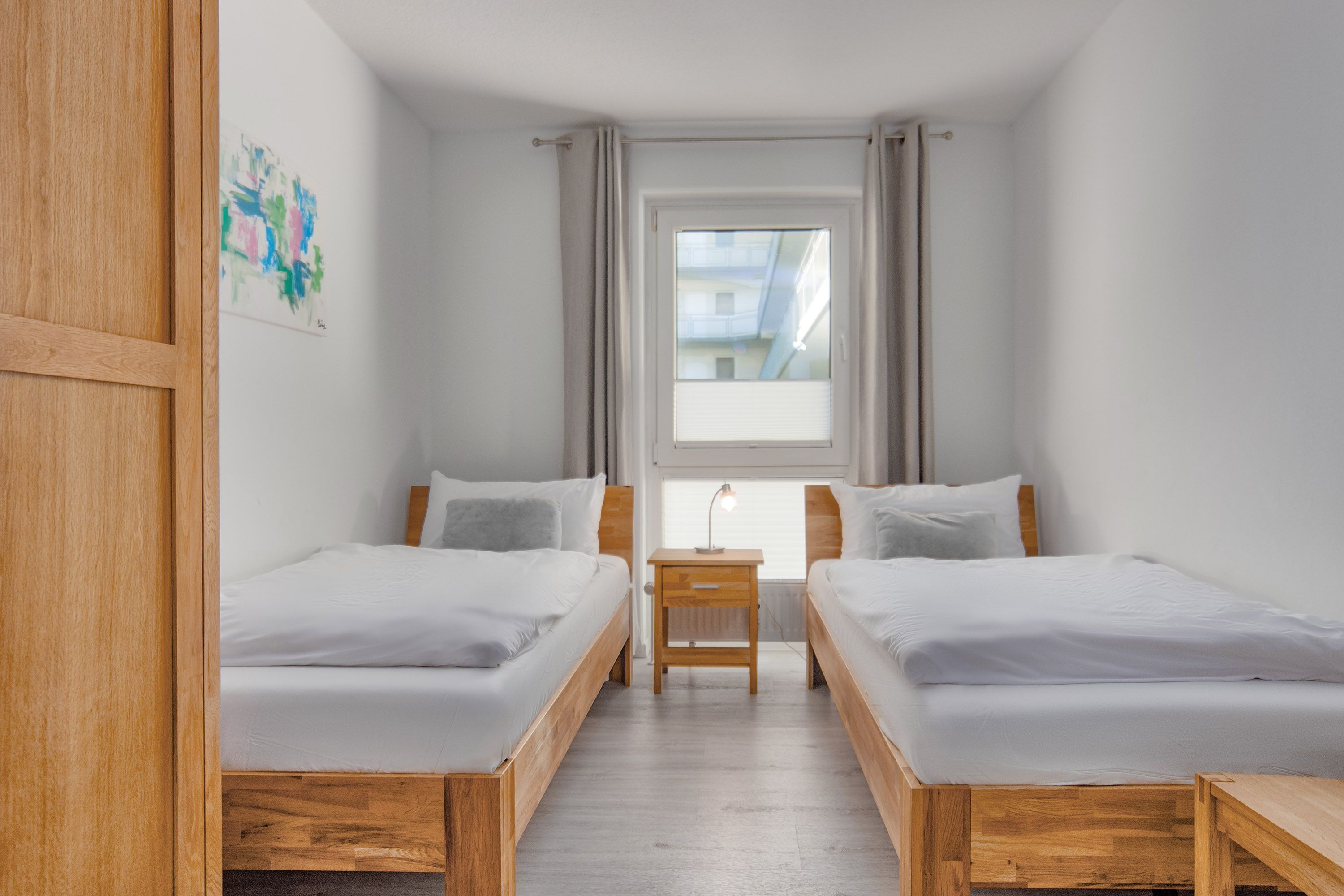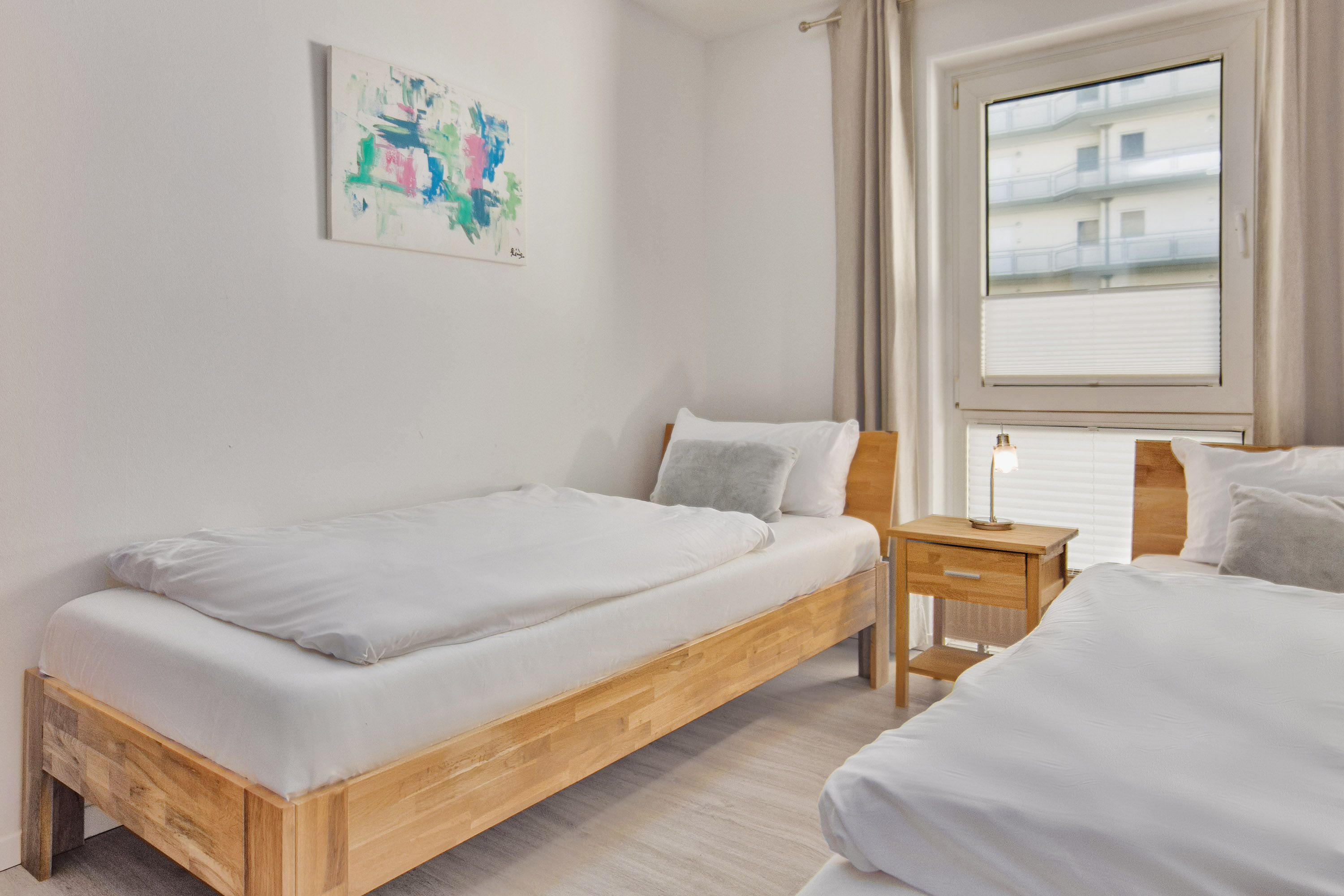 Schlafzimmer 2 bietet zwei Einzelbetten (90x200 cm) und einen 32-Zoll-TV für individuelle Unterhaltung.