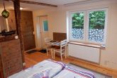 Die gemütlich eingerichtete Ferienwohnung befindet sich im Erdgeschoß und besteht aus einem kombinierten Wohn-/Schlafraum mit einer Sitzgruppe einer Kochniesche und dem Duschbad.