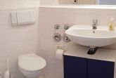 Das Badezimmer besitzt eine Dusche, Waschtisch und WC.