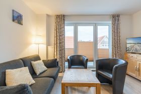 In der voll ausgestatteten Küchenzeile finden Sie einen Backofen mit Cerankochfeld, eine Mikrowelle (im Schrank) , einen Geschirrspüler und einen Kühlschrank mit Gefrierfach. Im Schlafzimmer steht ein geräumiger Kleiderschrank für Ihre Urlaubsgarderobe. Das Doppelbett hat eine durchgehende Matratze (Liegefläche 180x200 cm). Auf dem Balkon (Nordseite) stehen Balkonmöbel für Sie bereit. Ihr Auto stellen Sie sicher in der Tiefgarage ab. Es gibt keinen direkten Zugang von der Tiefgarage ins Haus. Die Zufahrt liegt separat links neben dem Haus Waterkant. Haustiere sind in dieser Wohnung nicht erlaubt.