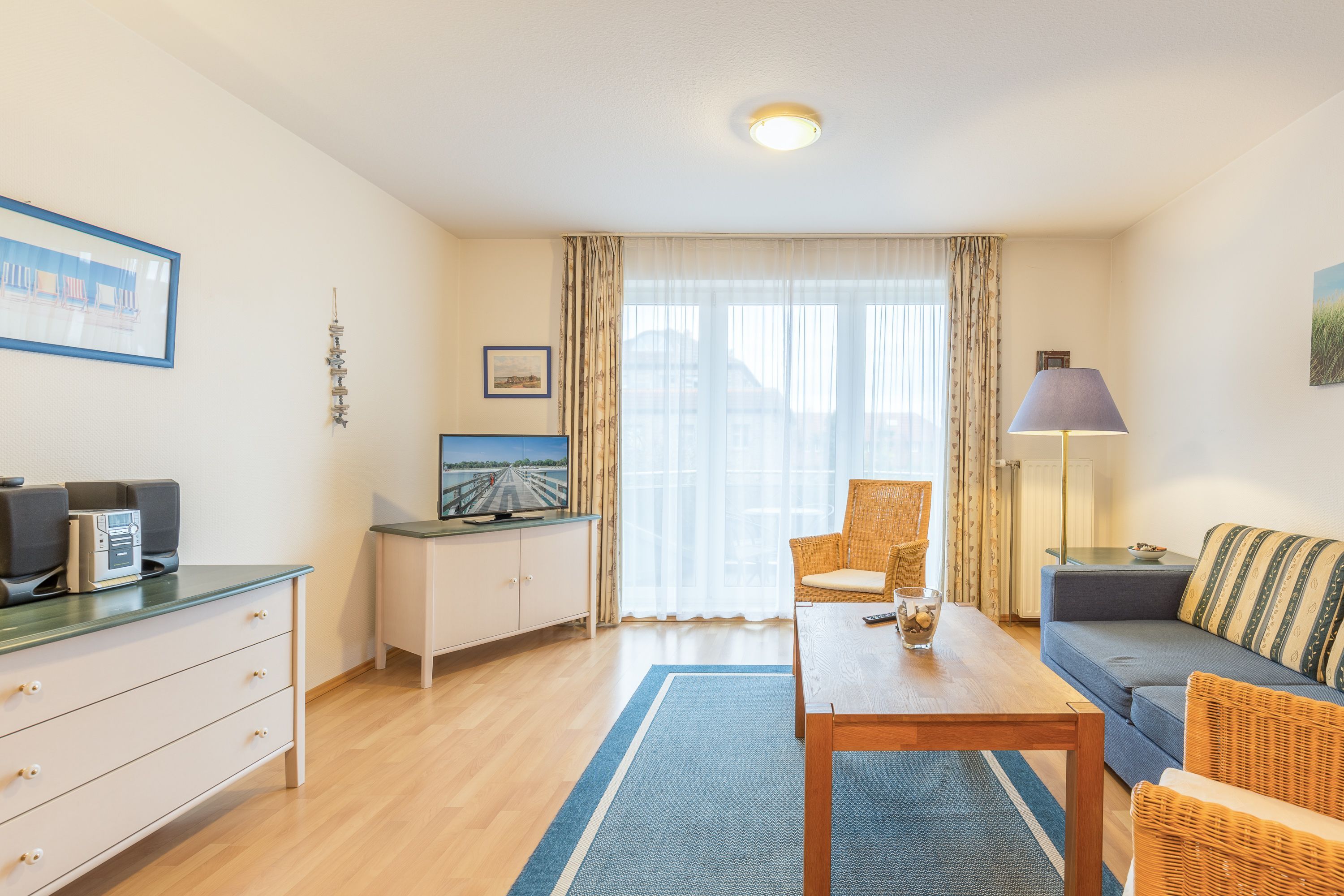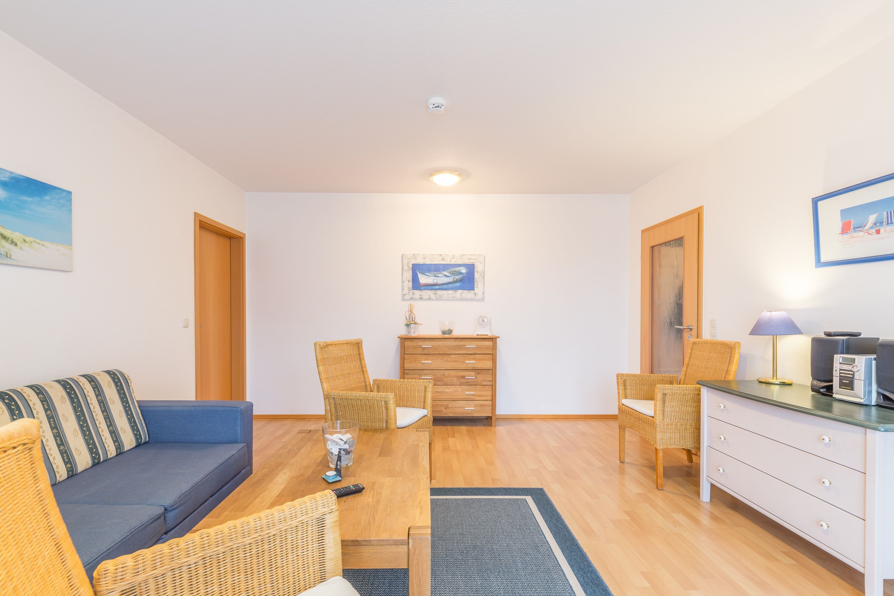 Die 3-Zimmer-Ferienwohnung Kajüte befindet sich in zentraler Lage in Boltenhagen. Sie liegt im 1. Obergeschoss und ist über die Treppe im Hausflur ( Eingang Haus 6a) zu erreichen. Mit einer Größe von 70 m² bietet sie Platz für maximal 5 Personen. Das Appartement hat ein Wohnzimmer, eine separate Küche, 2 Schlafzimmer und ein Duschbad. In der voll ausgestatteten Küchenzeile finden Sie ein Kochfeld mit 2 Platten, eine Mikrowelle , einen Geschirrspüler und einen Kühlschrank mit Gefrierfach. Im Schlafzimmer steht ein Kleiderschrank und ein Doppelbett. Auf dem Balkon (Westseite) stehen Balkonmöbel für Sie bereit. Ihr Auto stellen Sie sicher in der Tiefgarage ab. Es gibt keinen direkten Zugang von der Tiefgarage ins Haus. Die Zufahrt liegt separat links neben dem Haus.