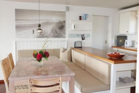 Dieses Ferienhaus bietet Ihnen eine hochwertige Ausstattung und großzügige Räume, die für einen entspannten Aufenthalt sorgen. Die große, komplett eingerichtete Küche verfügt über alle modernen Annehmlichkeiten wie Geschirrspüler, E-Herd, Backofen, Mikrowelle und weitere Elektrogeräte ideal für Hobbyköche und gemütliche Mahlzeiten.