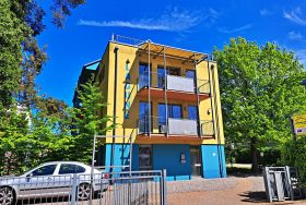Herzlich willkommen im Ferienappartement-Haus Lagune! Das charmante Haus liegt in einer der schönsten und ruhigsten Strandgegenden des Seebades Bansin, direkt zwischen der malerischen Ostseeküste und dem idyllischen Schloonsee. Nur 50 Meter trennen Sie von unserem feinsandigen Badestrand, der zu erholsamen Stunden am Wasser einlädt. In dem stilvoll eingerichteten Haus erwarten Sie sechs modern und hochwertig möblierte Ferienwohnungen, die zwischen 25 und 42 Quadratmetern groß sind und mit einer Vollkomfortausstattung sowie einem Balkon oder einer Terrasse ausgestattet sind. Ihr Auto können Sie direkt am Haus parken und selbstverständlich ist auch das WLAN Netz kostenfrei. Für Ihre Fahrräder stehen Ihnen offene Unterstellmöglichkeiten auf dem abgeschlossenen Grundstück zur Verfügung. Bitte beachten Sie, dass Haustiere leider nicht erlaubt sind.