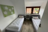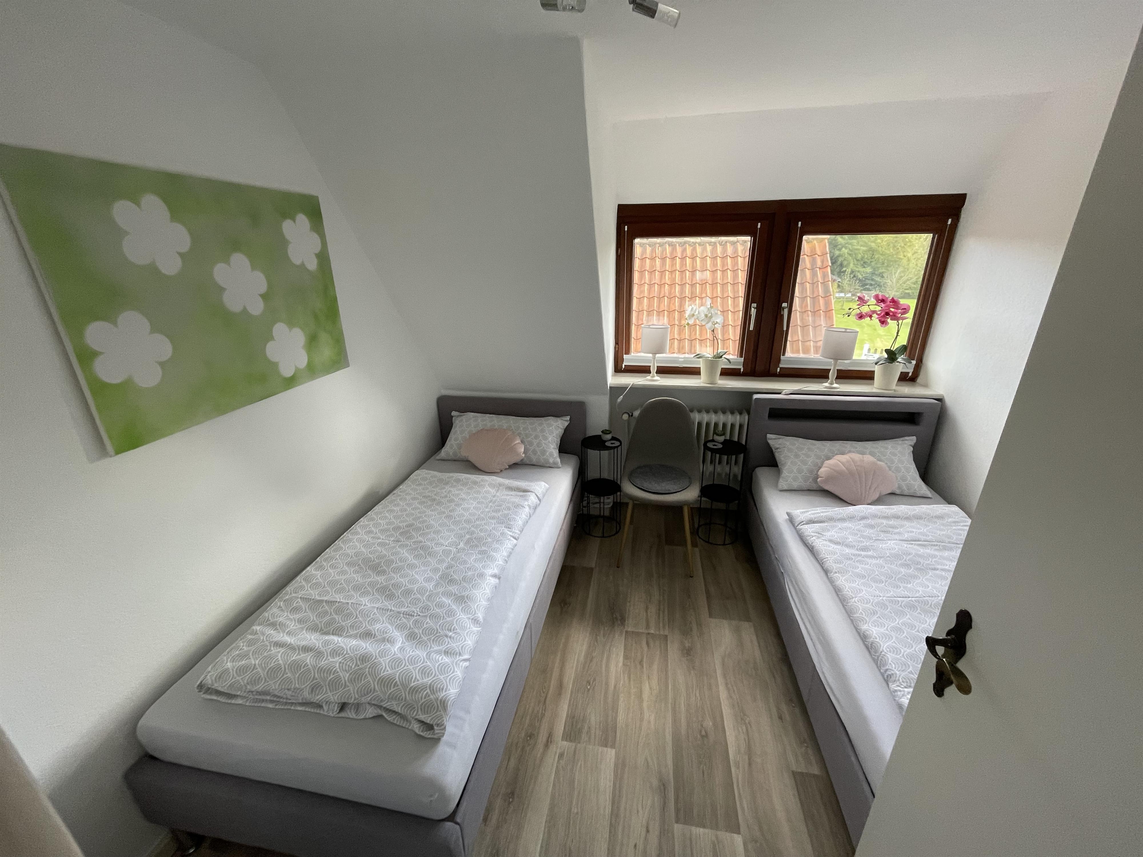 Die Wohnung befindet sich im Obergeschoss eines Wohnhauses und verfügt über eine gut ausgestattete separate Küche (E-Herd/Backofen, Mikrowelle, Kühl-Gefrierkombination, Kaffeemaschine, Wasserkocher, Toaster, Mixer ….) inkl. Essplatz, ein Wohnzimmer mit Sat-TV, ein Schlafzimmer mit Doppelbett, ein zweites Schlafzimmer mit zwei Einzelbetten und ein Bad mit DU/WC.