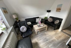 Die modern eingerichtete Ferienwohnung liegt nur ca. 500 m vom Strand entfernt. Cafés, Restaurants, Fahrradverleih und Einkaufsmöglichkeiten (Bäcker…) sowie die Spielscheune mit ca. 3.000 m² Spielfläche, Arzt, Apotheke sind fußläufig in ca. 5 Minuten zu erreichen.
