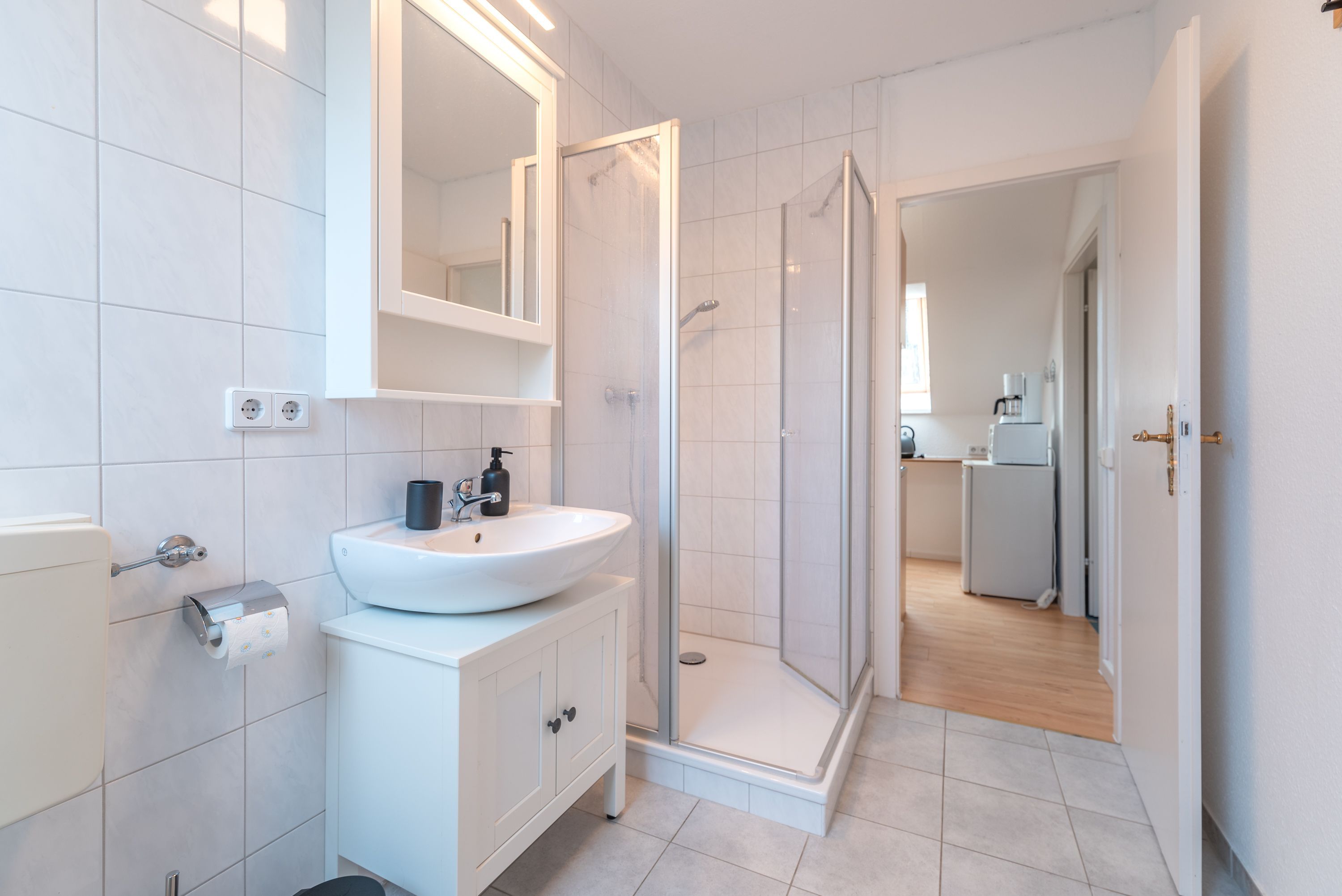 • Badezimmer: Modern ausgestattet mit Dusche und WC für zusätzlichen Komfort.