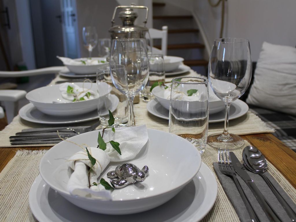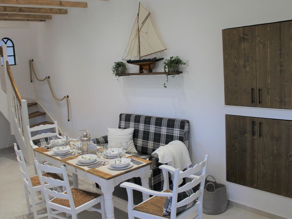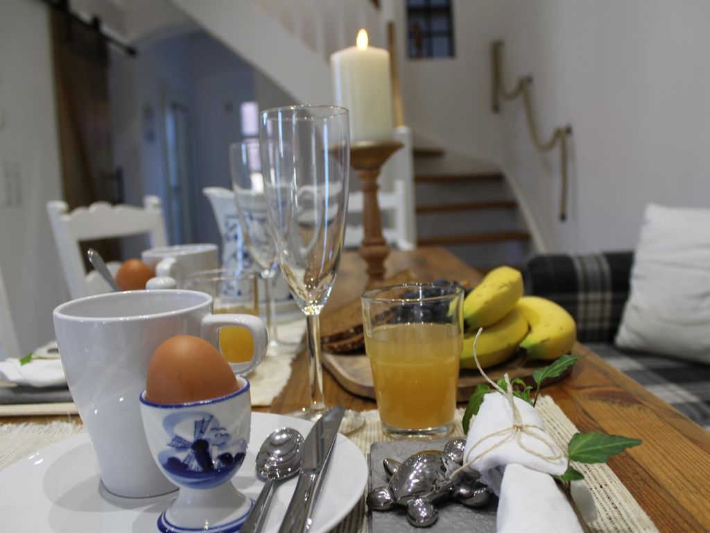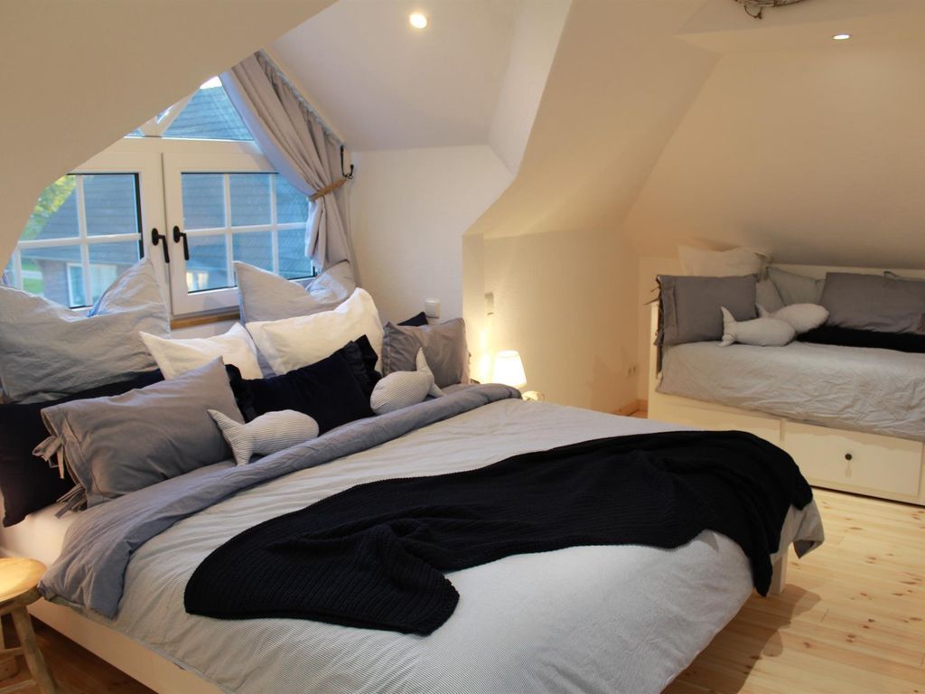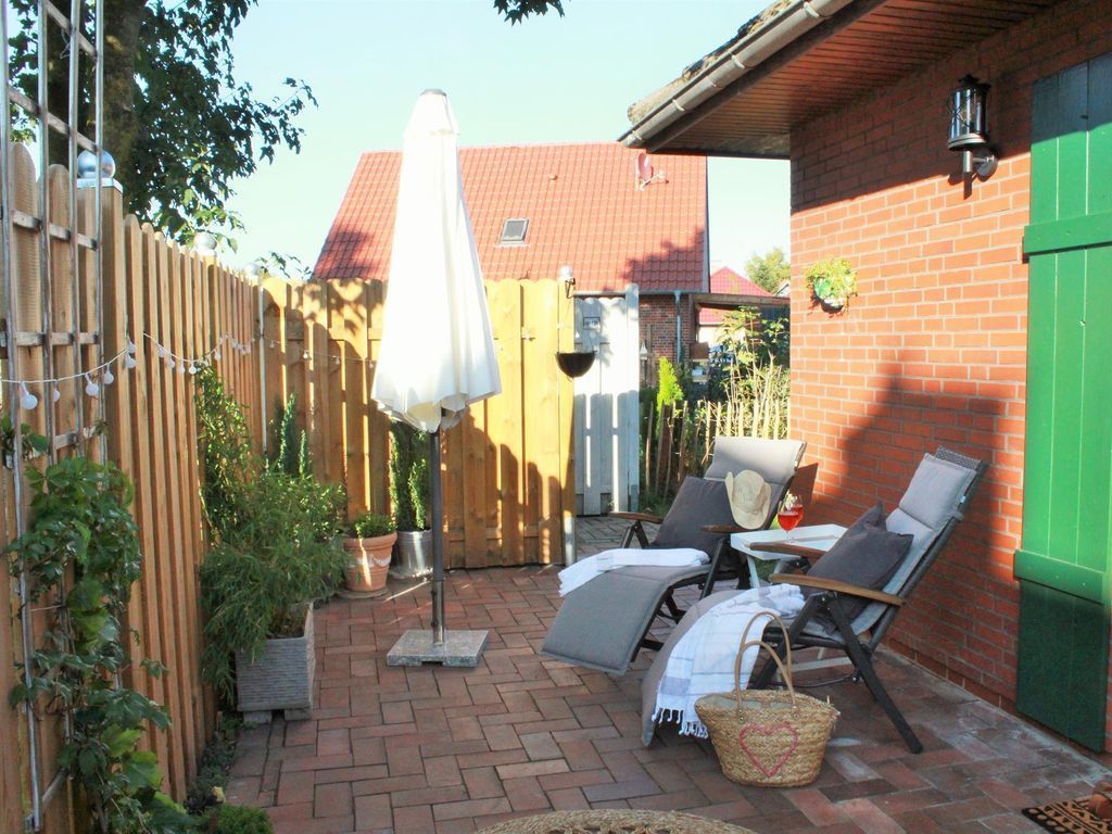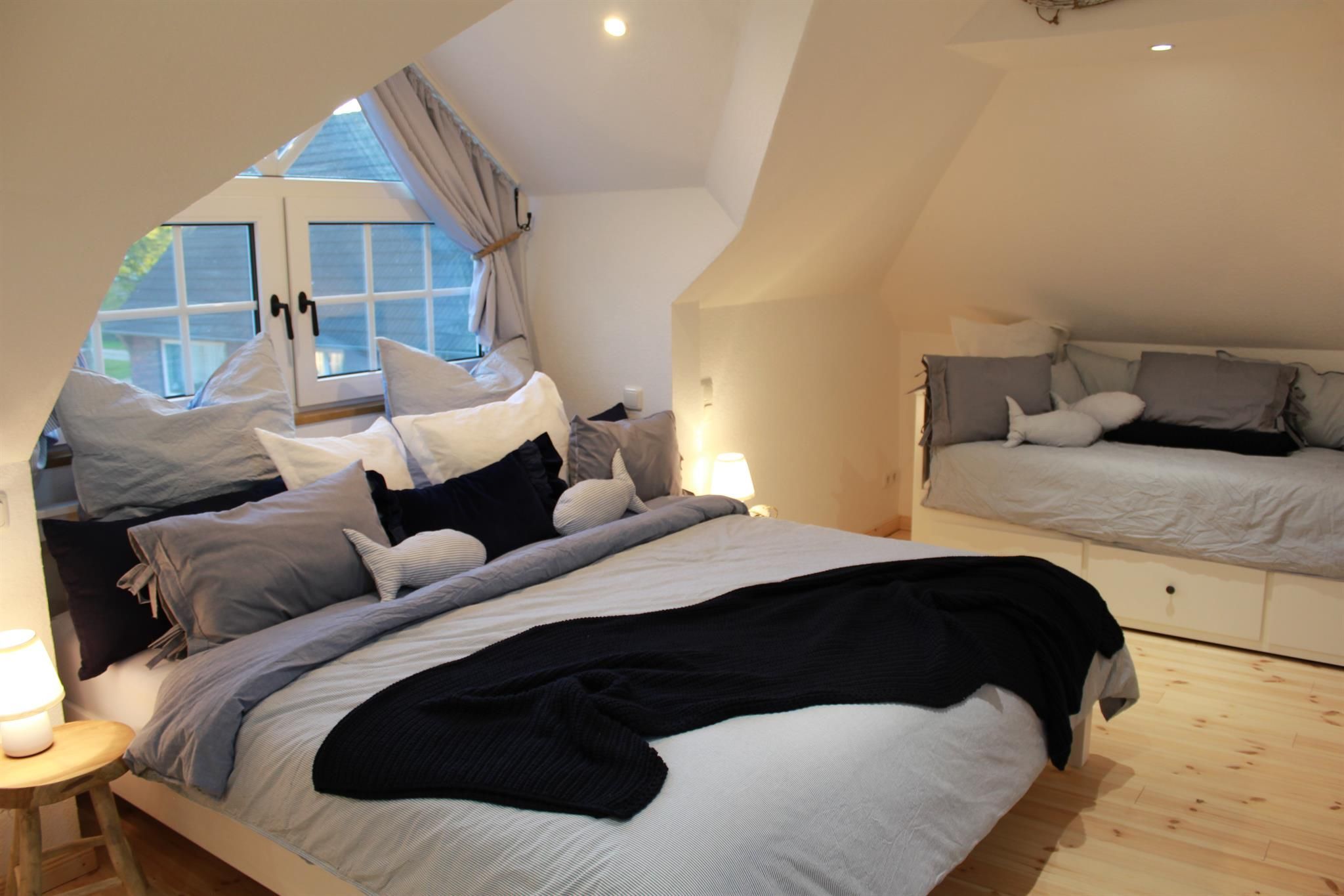Das offene Wohnkonzept, Bad und Eingangsbereich besitzen eine Fußbodenheizung. Im ostfriesischen Butzenbett könnt Ihr stundelang lesen oder die Seele baumeln lassen. Die ansprechende Küche ist mit edlen Elektrogeräten und diversen Utensilien ausgestattet. Der Essbereich mit original Binsenstühlen und bequemen Esssofa am Gesindetisch kann jederzeit mit einem Kinderhochstuhl ergänzt werden. Im Wohnbereich wartet eine gemütliche Couch und der Ohrensessel gegenüber dem Flachbildfernseher und der Soundanlage mit Deckenlautsprechern. Einen Safe und auch allerlei Unterhaltsames beherbergt der eingebaute Wandschrank. Entspannung bietet im außergewöhnlichen Bad die begehbare Regendusche. Im offenen und loftartigen Schlafbereich des Obergeschosses erwartet Euch ein heller Dielenholzfußboden. Neben einem großen und komfortablen Doppelbett, gibt es zwei kuschelige Tagesbetten mit Matratzen, die bei Bedarf zu Doppelbetten ausgezogen werden können. Auf Eurer privaten Terrasse könnt Ihr die Sonne genießen, den Abend mit einem Glas Wein ausklingen lassen oder Grillen.