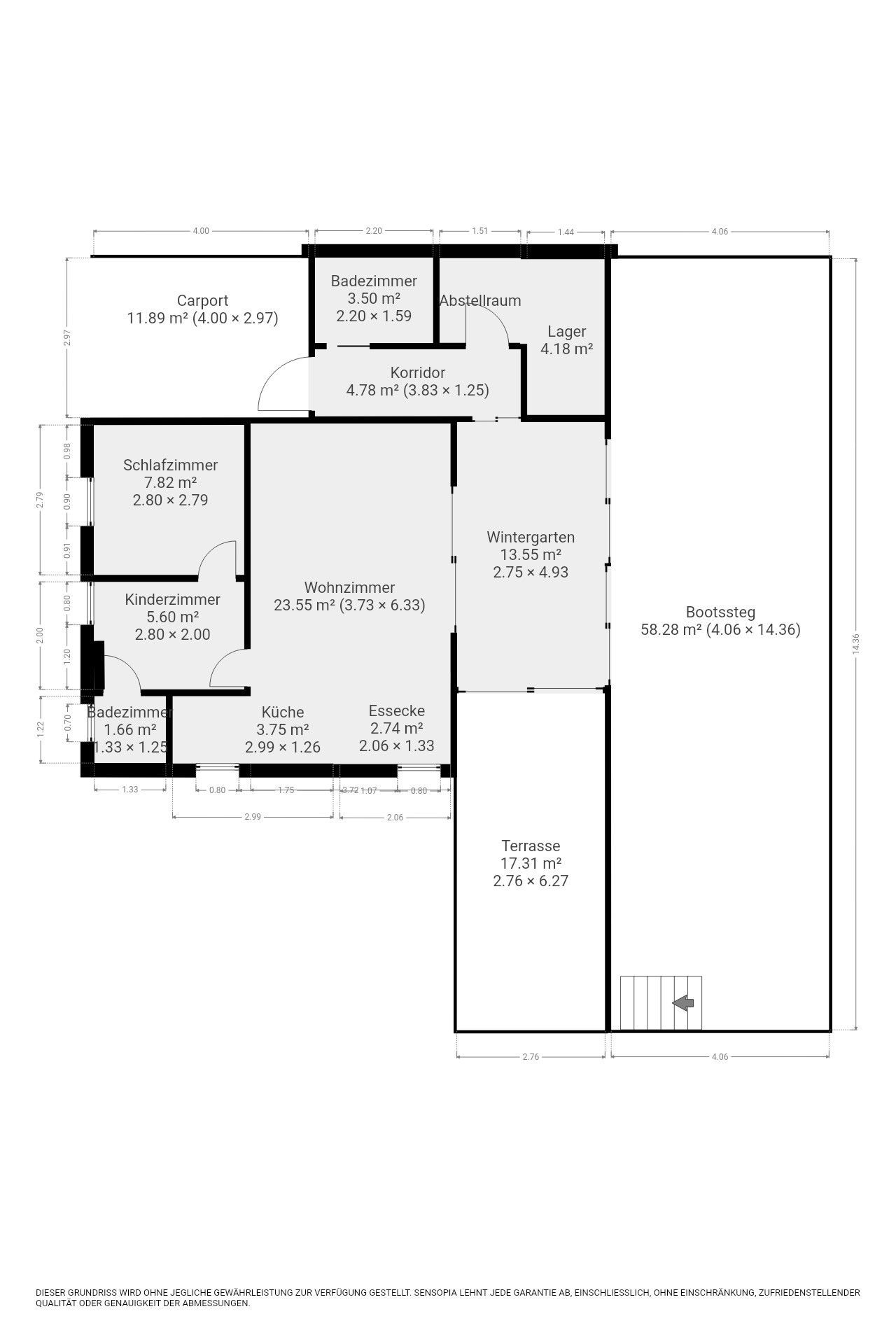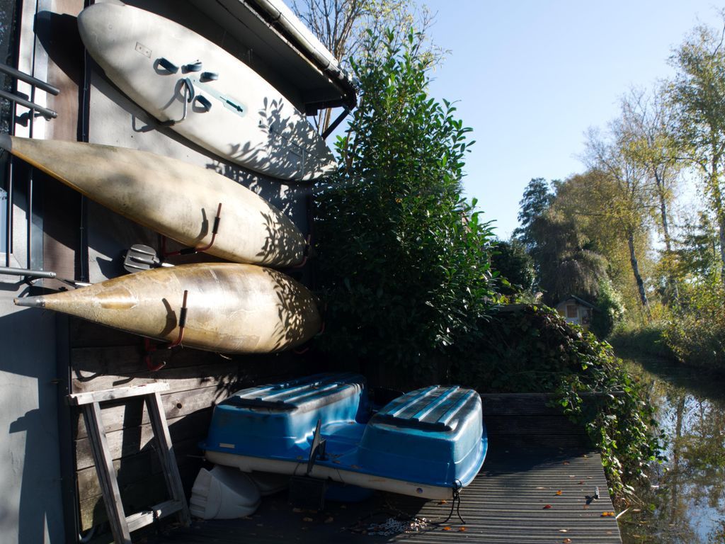 Ein besonderes Highlight ist der Wintergarten, der mit einem Esstisch für vier Personen ausgestattet ist. Von den zwei Relaxsesseln im Wintergarten genießen Sie den herrlichen Ausblick auf den Bootssteg und den Kanal. Auch bei schlechtem Wetter können Sie hier die Natur erleben. Von dort gelangen Sie auf die teilweise überdachte Terrasse mit gemauertem Grillkamin und weiter über eine Treppe zum etwa 14 m langen Bootssteg.