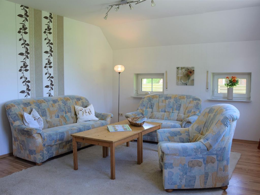 Das freistehende Einfamilienhaus bietet großzügigen Raum und eine komfortable Ausstattung, die keine Wünsche offenlässt. Im Erdgeschoss finden Sie eine voll ausgestattete Wohnküche, ein Badezimmer mit Badewanne und Dusche, ein gemütliches Wohnzimmer, ein Schlafzimmer mit Doppelbett sowie einen Hauswirtschaftsraum mit Waschmaschine und Gefrierschrank.