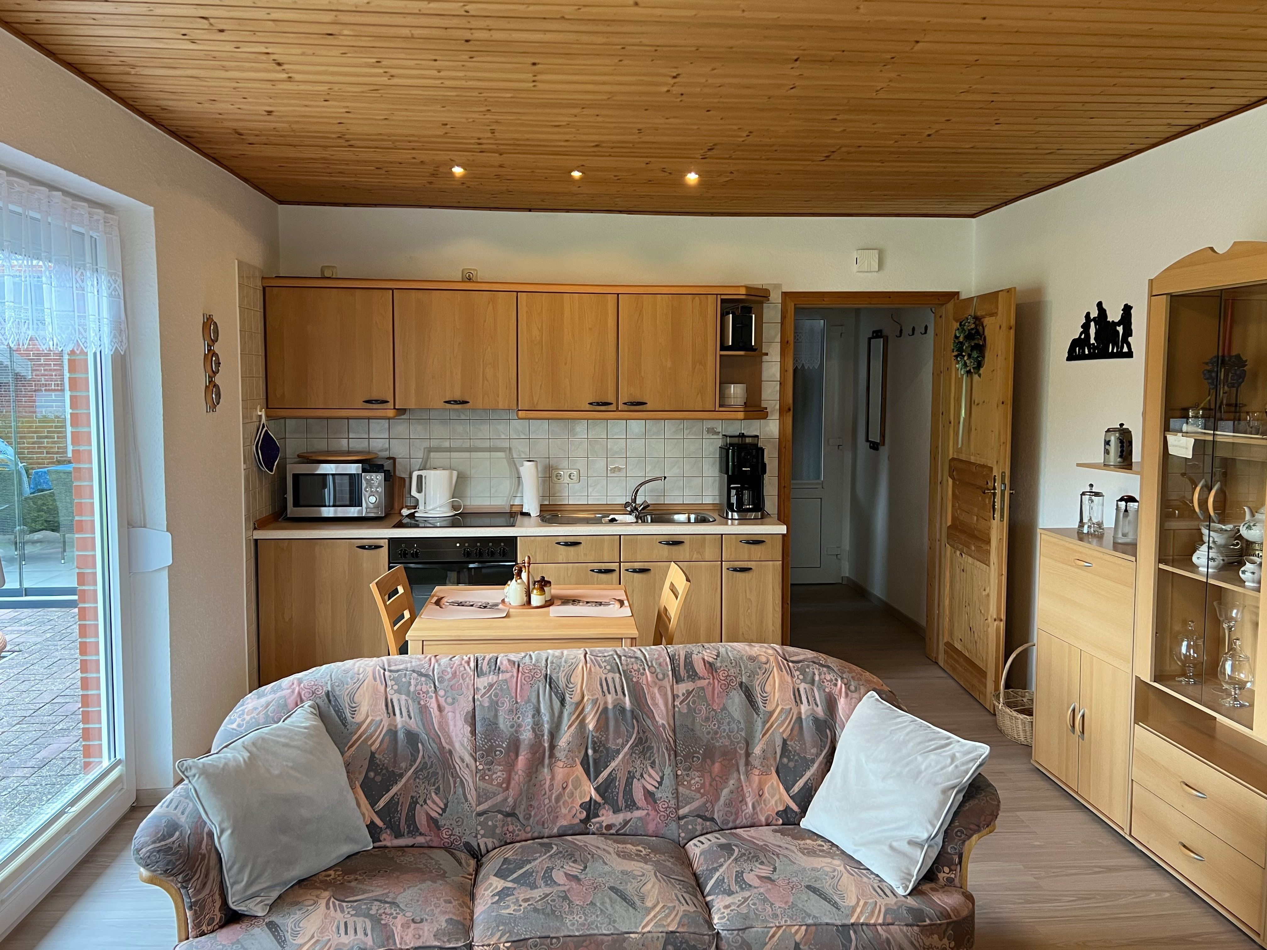 Unsere Ferienwohnung bietet alles, was Sie für einen entspannten Aufenthalt benötigen. Sie besteht aus einem Schlafzimmer, einer gemütlichen Wohnküche und einem Badezimmer. Für entspannte Stunden im Freien steht Ihnen eine Terrasse mit Grillmöglichkeit zur Verfügung.