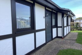 Der freistehende Ferienbungalow im Fachwerkstil bietet auf 65m² ausreichend Platz für vier Erwachsene und einem Kleinkind bis 2 Jahre. Im Wohnraum befinden sich komfortable Sitzmöglichkeiten, ein Fernseher und eine offene, vollständig ausgestattete Küche. Von hier können Sie auf Ihre eigene Sonnenterrasse treten und das herrliche Nordseewetter genießen.