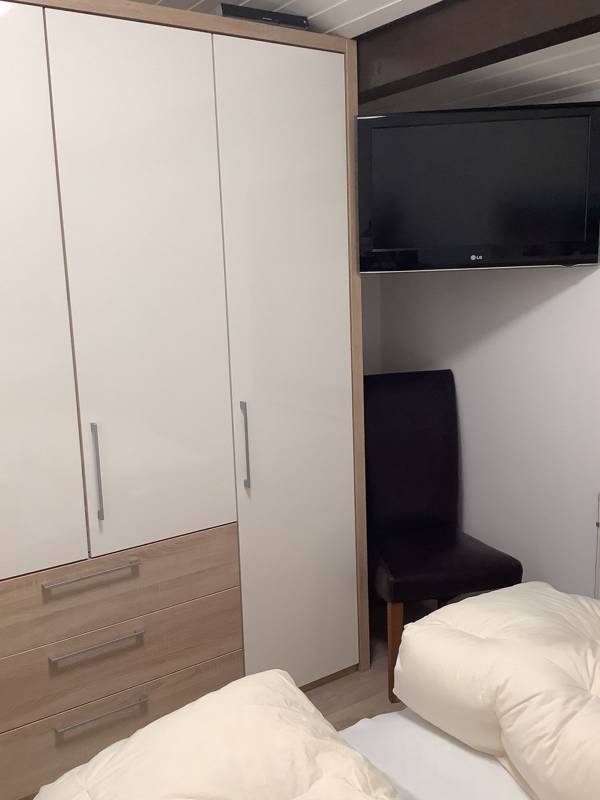 Das erste Schlafzimmer verfügt über ein Doppelbett, das zweite Schlafzimmer über drei Schlafmöglichkeiten, davon eines als Hochbett. Das Badezimmer verfügt über eine Dusche, ein WC und ein Waschbecken. Außerdem können Sie in einem kleinen Abstellraum Ihre Habseligkeiten verstauen.