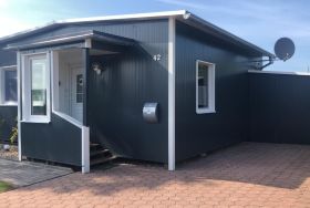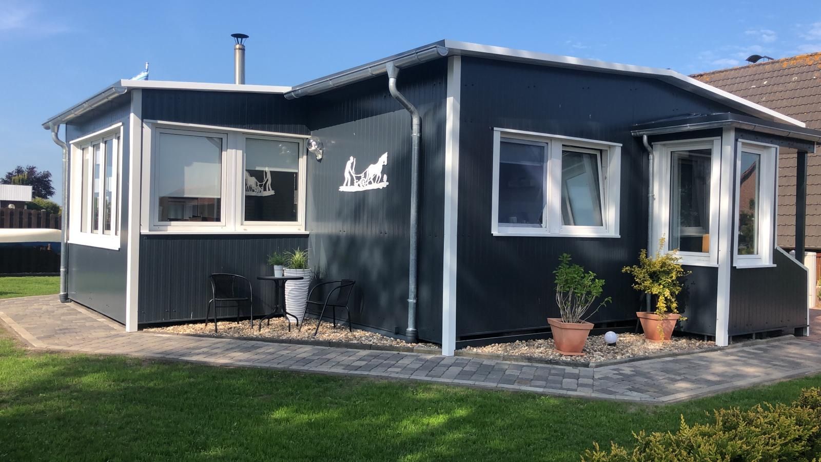 Das gesamte Wohnkonzept ist ebenerdig angelegt, allerdings muss das Haus über zwei Stufen betreten werden. Ein Parkplatz direkt am Haus bietet Platz für bis zu zwei Autos.