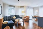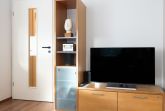 Die Wohnung verfügt über einen gemütlichen Wohn- und Essbereich mit direktem Zugang zur Terrasse sowie eine moderne Küchenzeile mit Geschirrspüler. Das Badezimmer ist mit einer Dusche, einem WC, einer Fußbodenheizung und einem Handtuchtrockner ausgestattet. Es gibt zwei separate Schlafzimmer: eines mit einem Doppelbett und Flachbildfernseher und ein weiteres mit zwei Einzelbetten.
