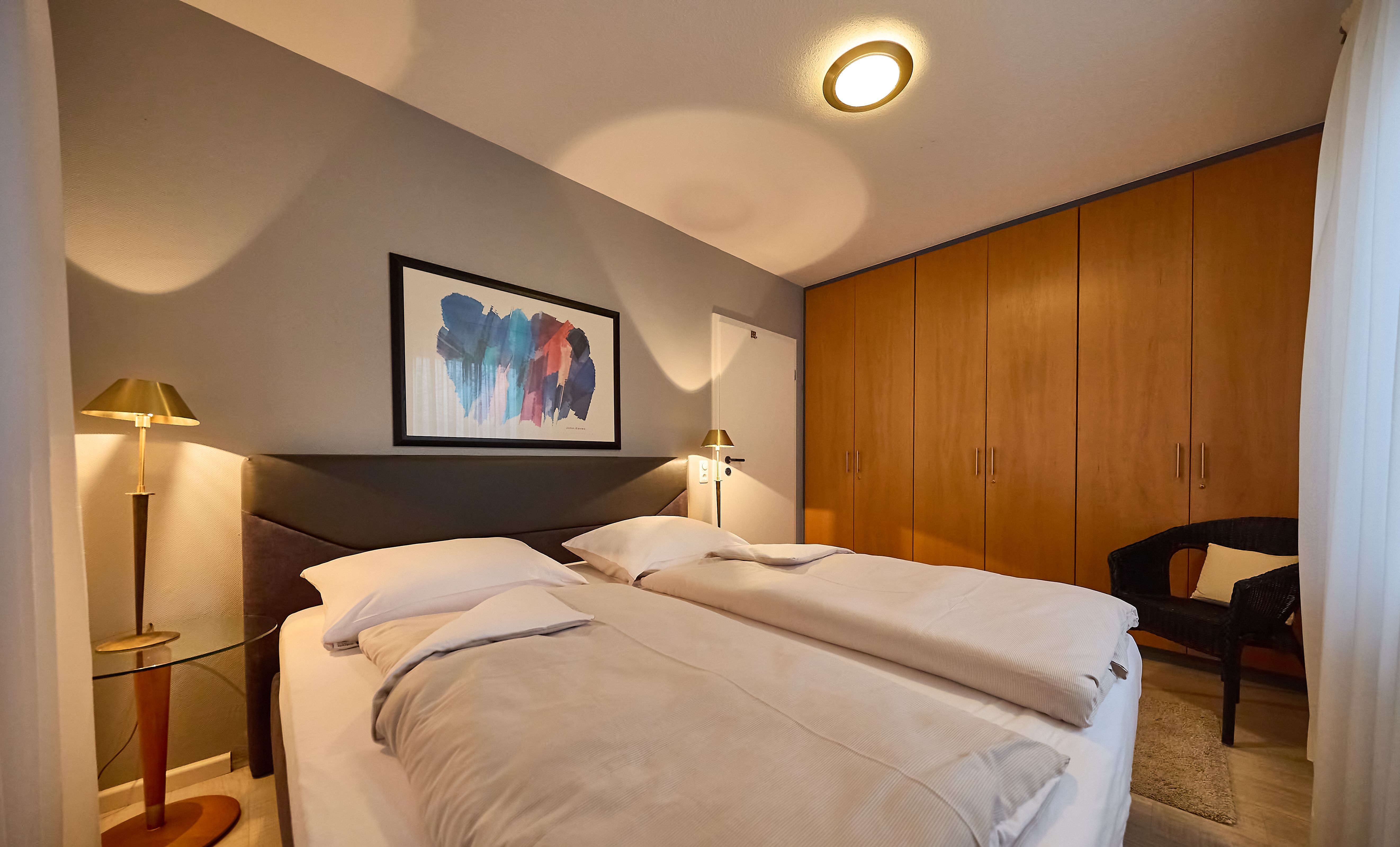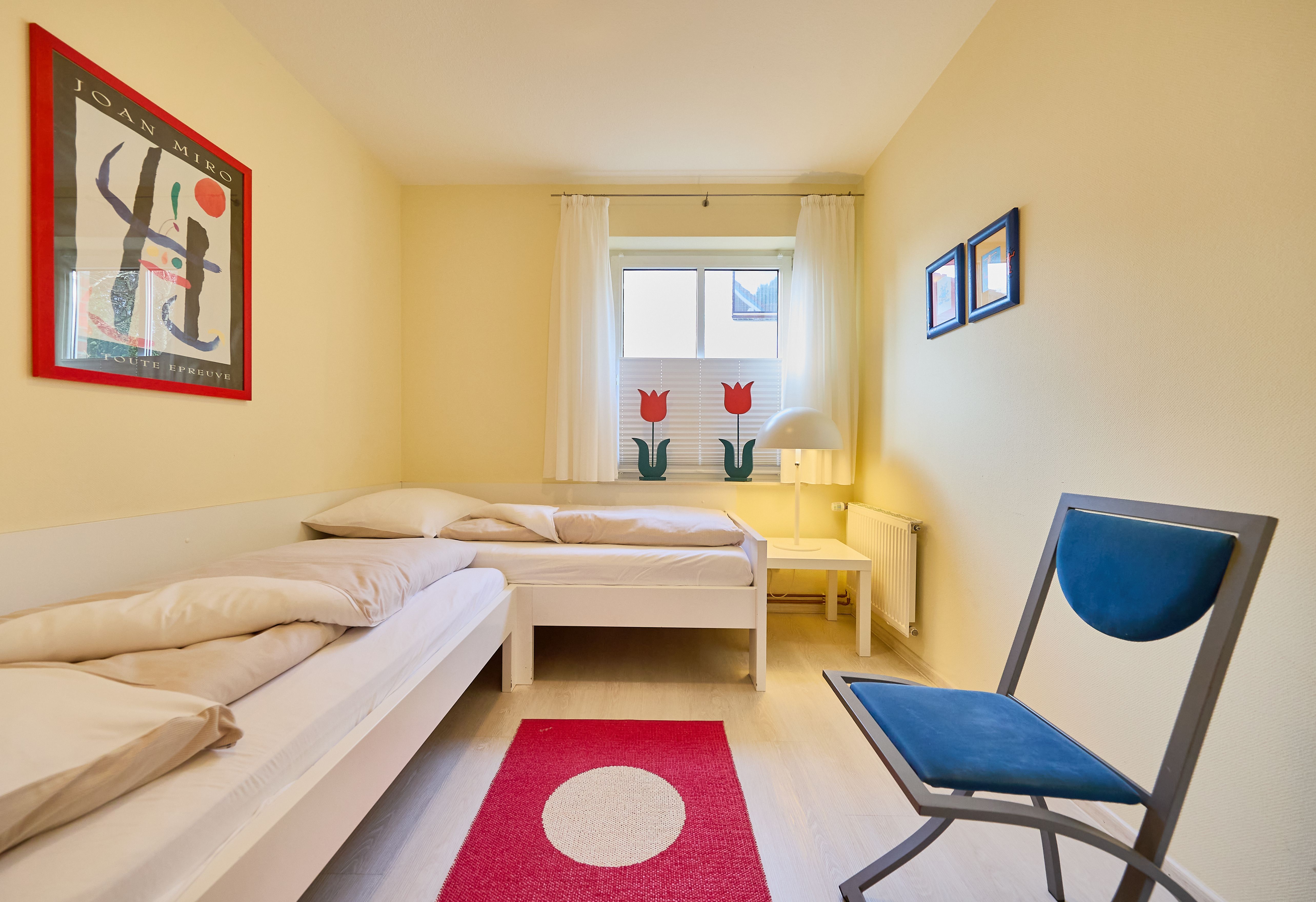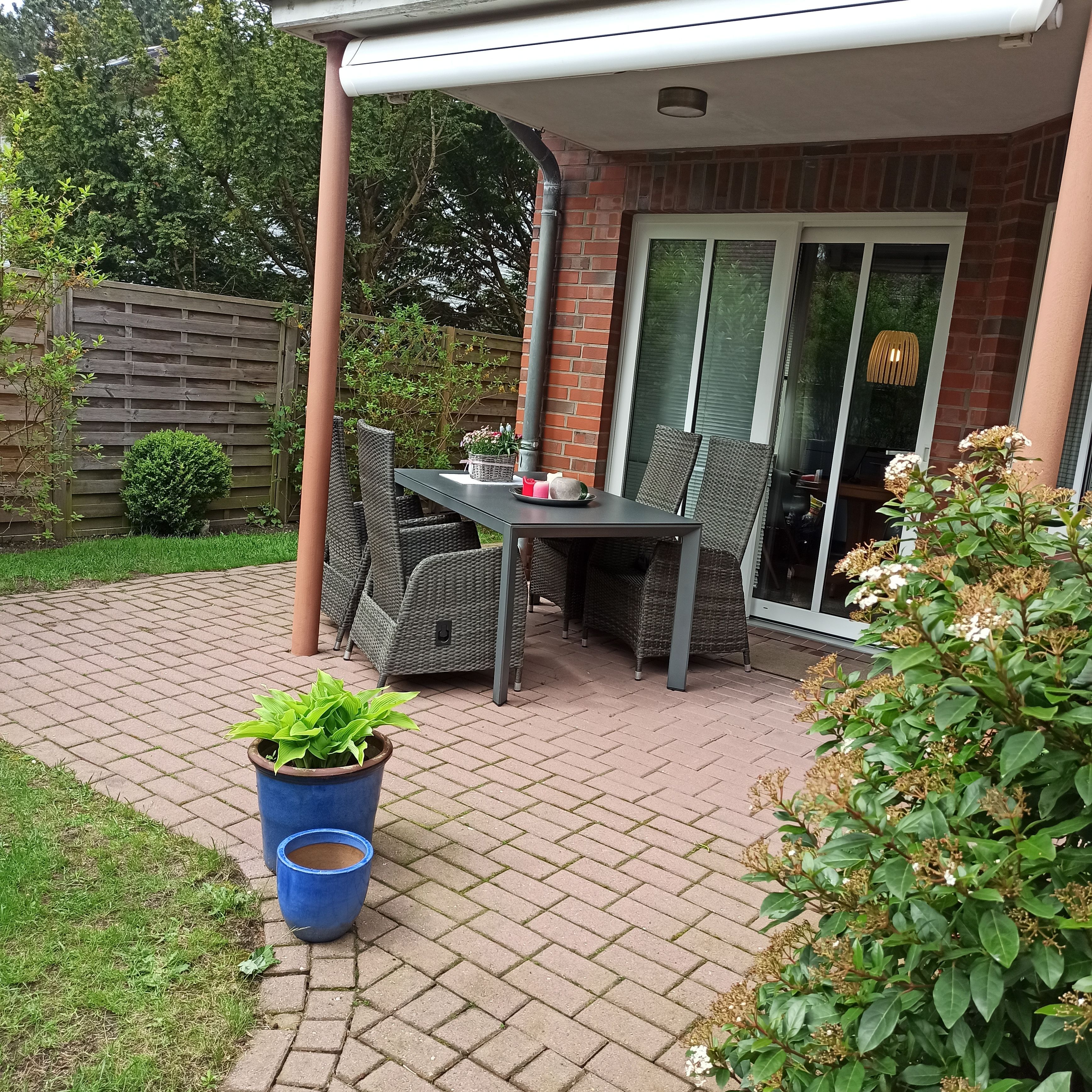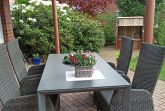 Die ebenerdige Ferienwohnung befindet sich im Erdgeschoss und bietet eine überdachte Süd-West-Terrasse mit direktem Zugang zum Garten, wo ein Strandkorb für Sie bereitsteht. Dank der stufenlosen Bauweise ist die Wohnung problemlos erreichbar und auch für gehbehinderte Gäste geeignet. Zu bedenken ist, dass die Tiefgarage zum Gehweg und den Eingängen der Wohnung nicht über einen Fahrstuhl verfügt.