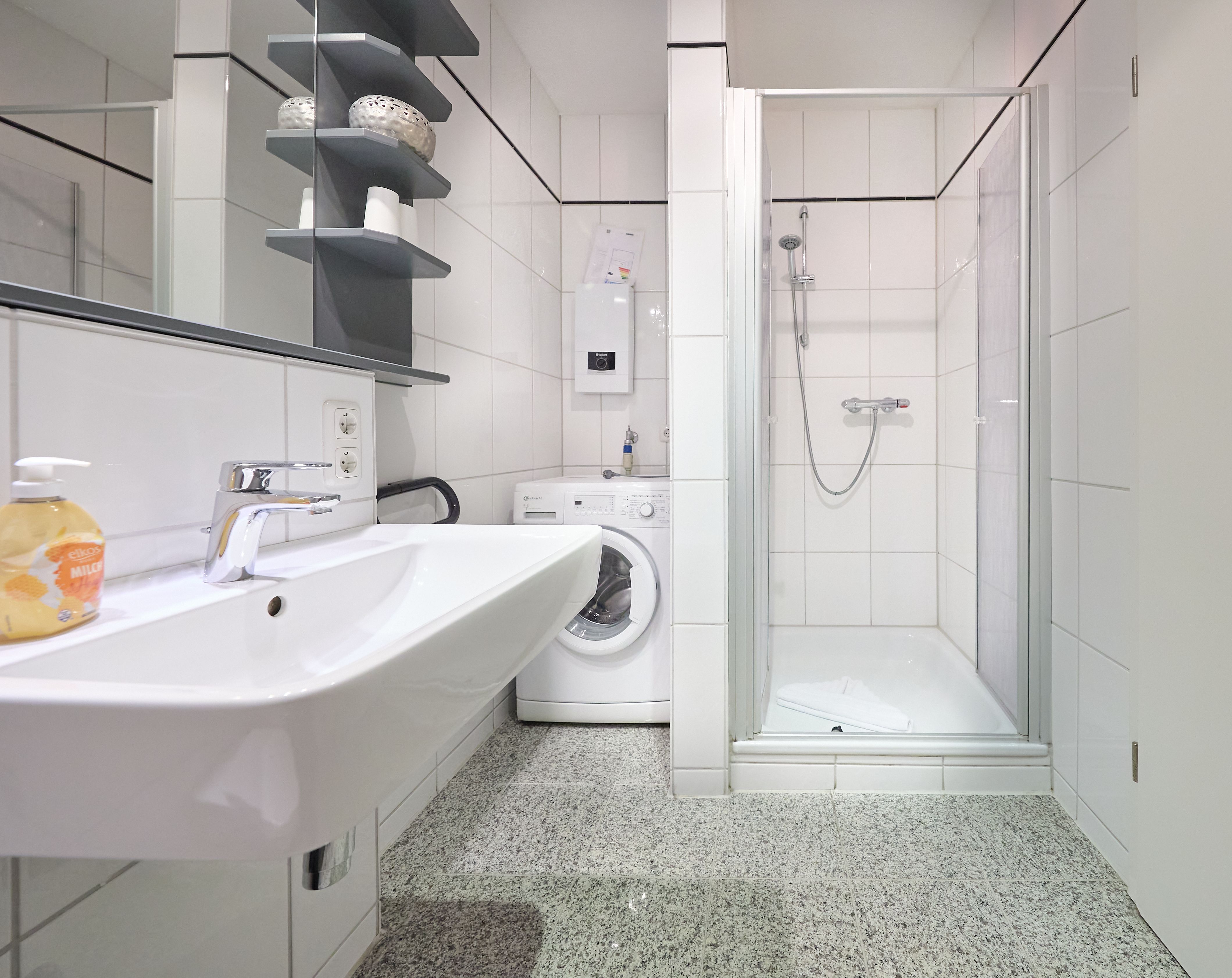 • Zudem erhalten Sie ein praktisches Starterpaket, das unter anderem einen Duschvorleger, ein Geschirrtuch, Geschirrspültabs, Spülmittel, eine Spülbürste, ein Spültuch, eine Toilettenrolle und Müllbeutel enthält.