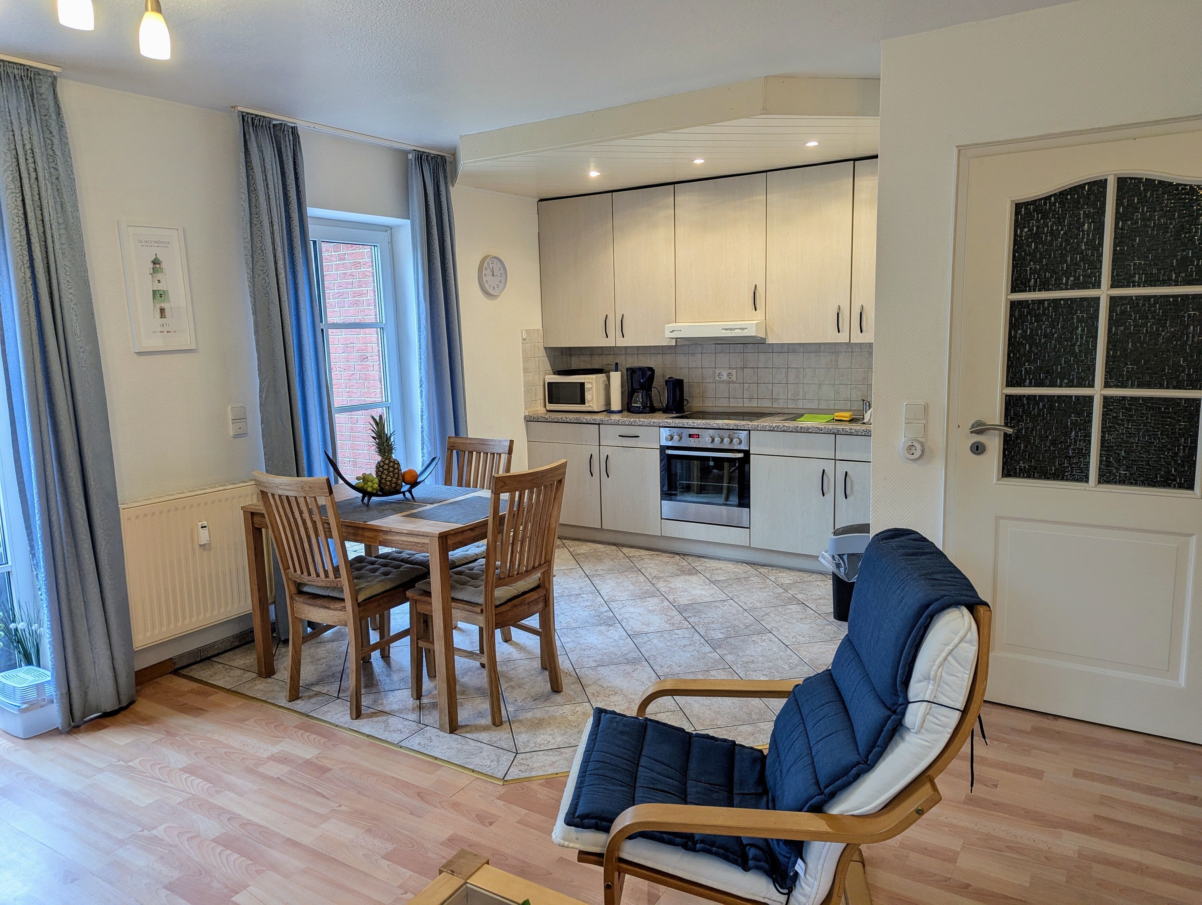 Die Ferienwohnung Mona liegt in einer ruhigen Seitenstraße Schönhagens, nur ca. 1000 m vom Strand entfernt.