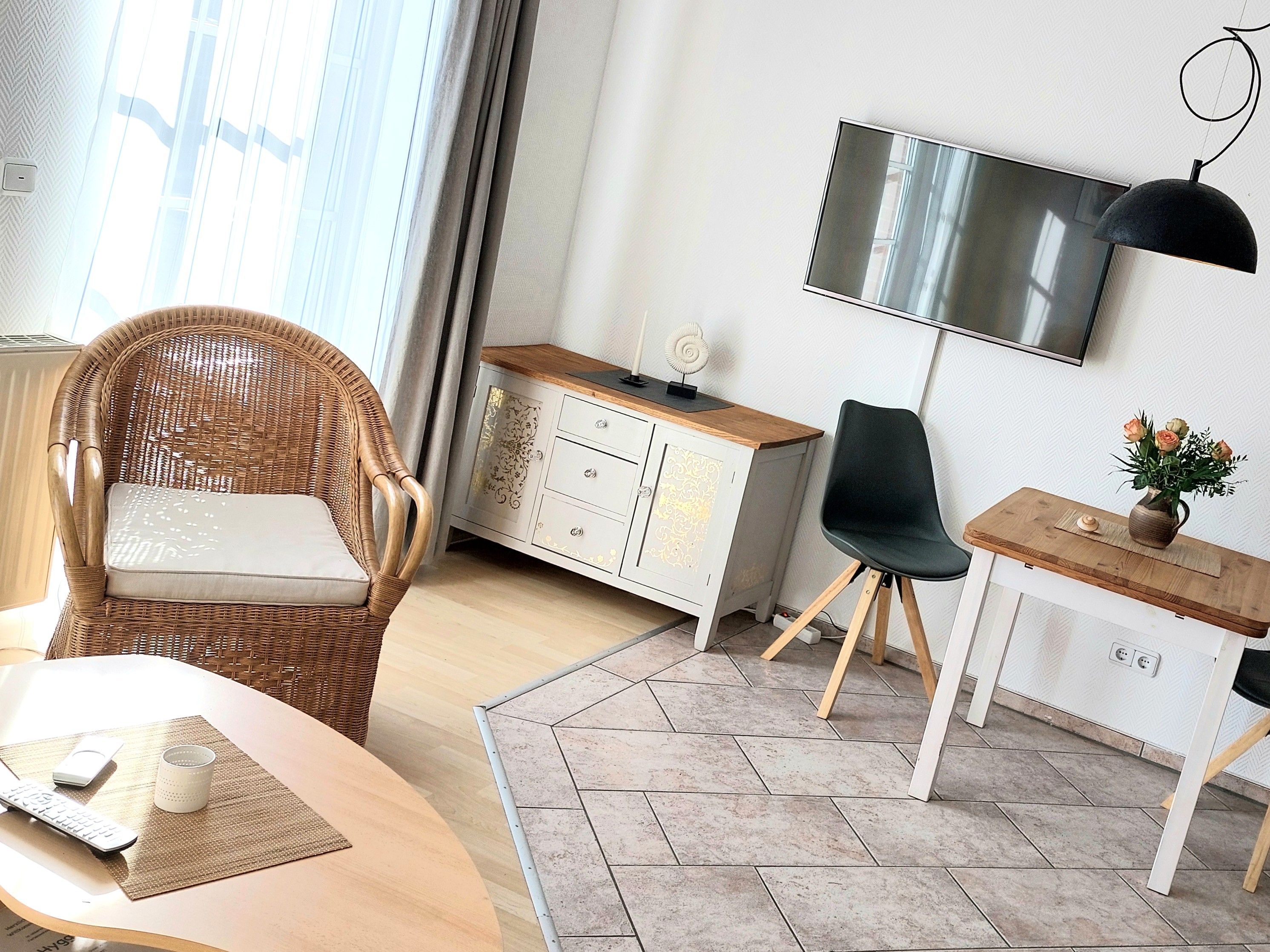 Die behagliche Atmosphäre und die geschmackvolle Einrichtung machen die Ferienwohnung zu einem idealen Rückzugsort für Einzelreisende und Paare, die eine kleine Auszeit an der Ostsee suchen und den Alltag hinter sich lassen möchten.