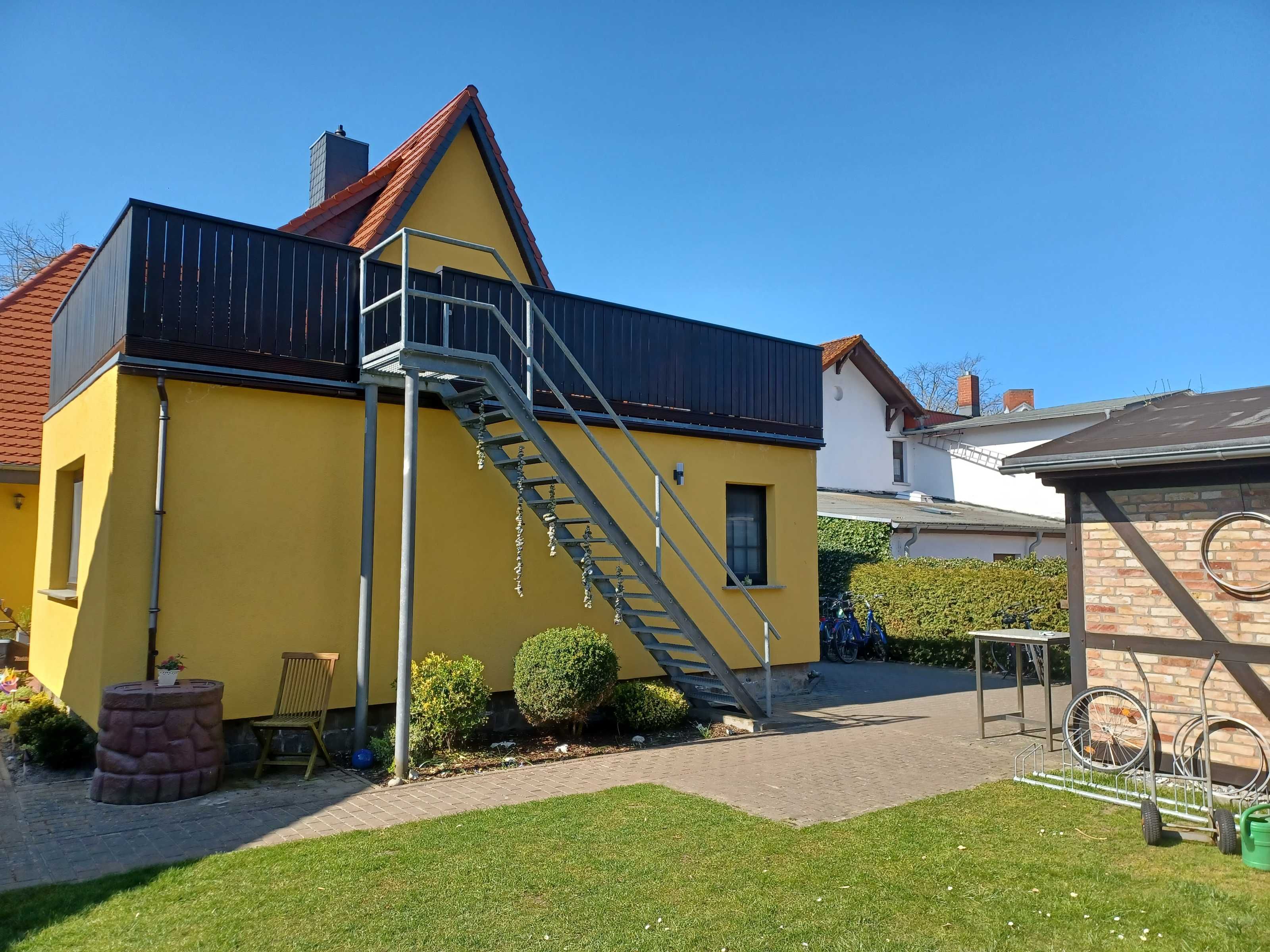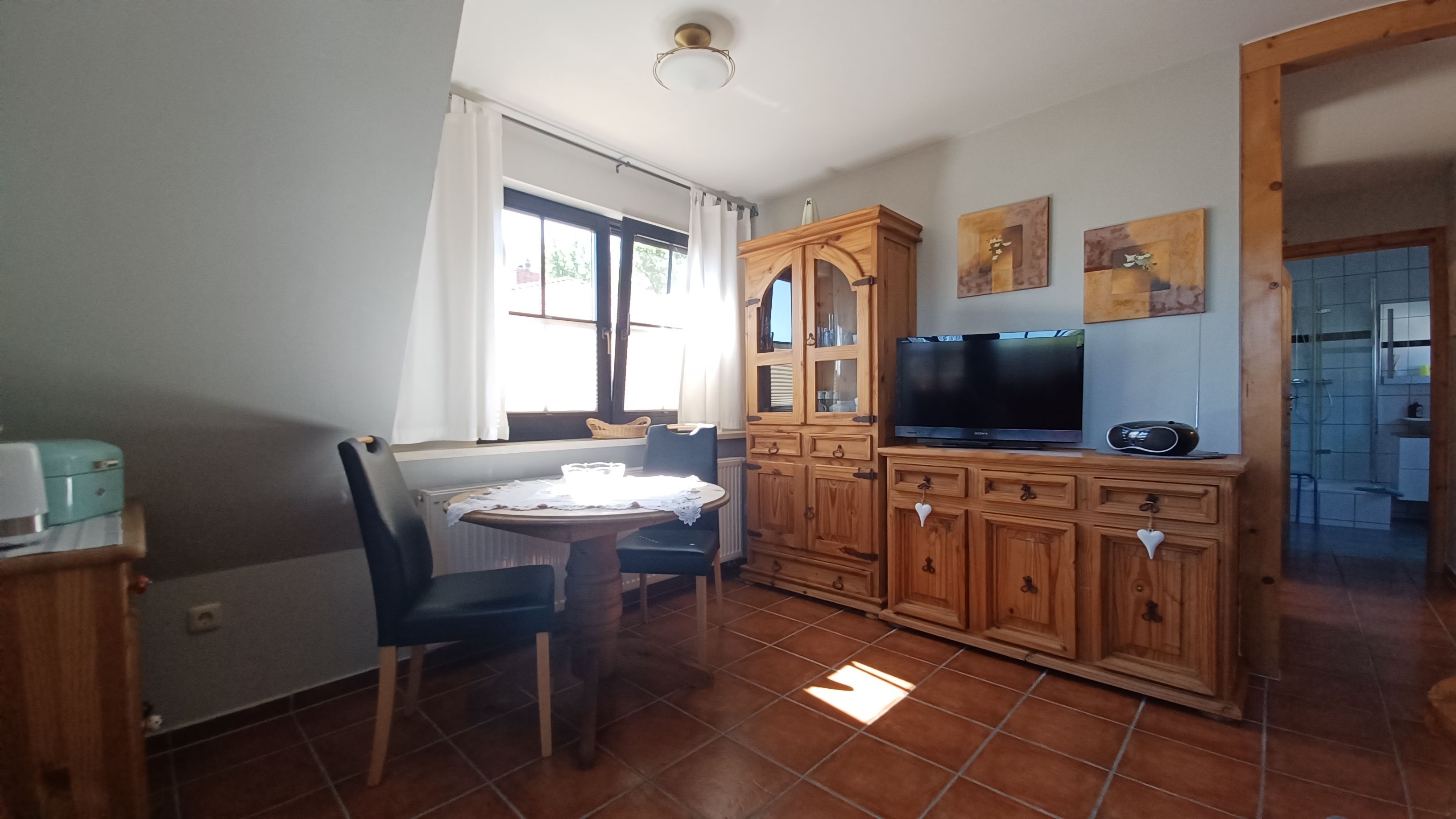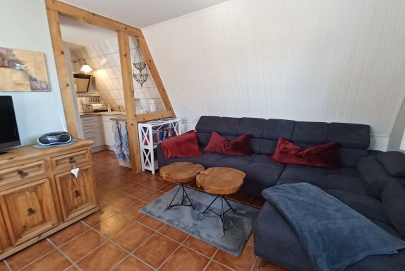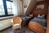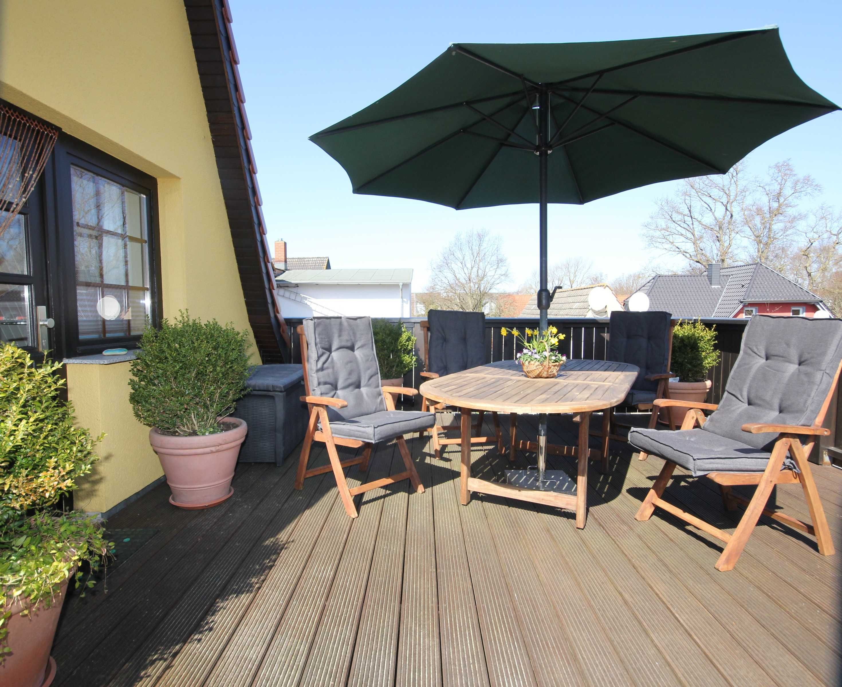 die komfortable Ferienwohnung mit liebevoller Ausstattung zum Detail und separatem Eingang über eine Freitreppe erreichbar, liegt im Obergeschoss. Genießen Sie die Nord- Ostseitige große Dachterrasse mit Gartenmöbel, einer Liegeinsel und Sonnenliegen, beim Frühstück oder lassen Sie den Abend mit einem guten Glas Wein am Strand in 250 m Entfernung ausklingen.Das Wohnzimmer verfügt über eine gemütliche Couch, kostenlosen WLAN- Gastzugang und SAT-TV. An das Wohnzimmer schließt sich die offene Küchenzeile an und ist ausgestattet mit einer Kühlschrank, und 2- Platten Cerankochfeld . Das separate Schlafzimmer verfügt über ein Doppelbett 1,80 x 2,00 m (getrennte Matratzen) und einem Kleiderschrank mit viel Stauraum.In der Ferienwohnung ist die Bettwäsche nicht vorhanden, die Handtücher können in der Zimmervermittlung für 7,00 € pro Person (1 Badetuch, 1 Handtuch) dazugebucht werden. Das Bad verfügt über eine Dusche/WC Für unsere Gäste sind die Fahrräder inclusive . Unsere Wohnungen sind Nichtraucherwohnungen. Die Kaution beträgt 100,- € und wird nach Abreise zurücküberwiesen.