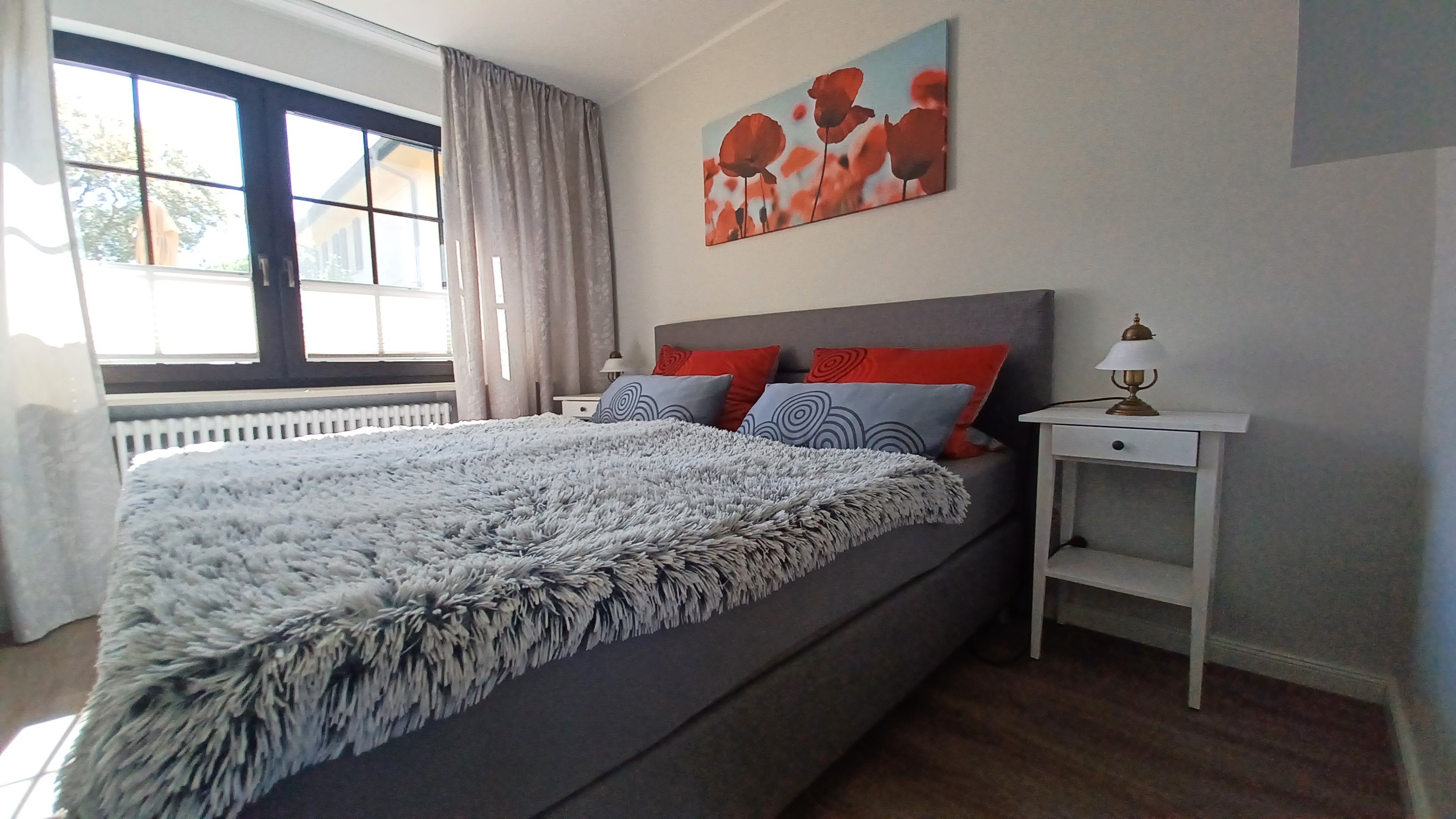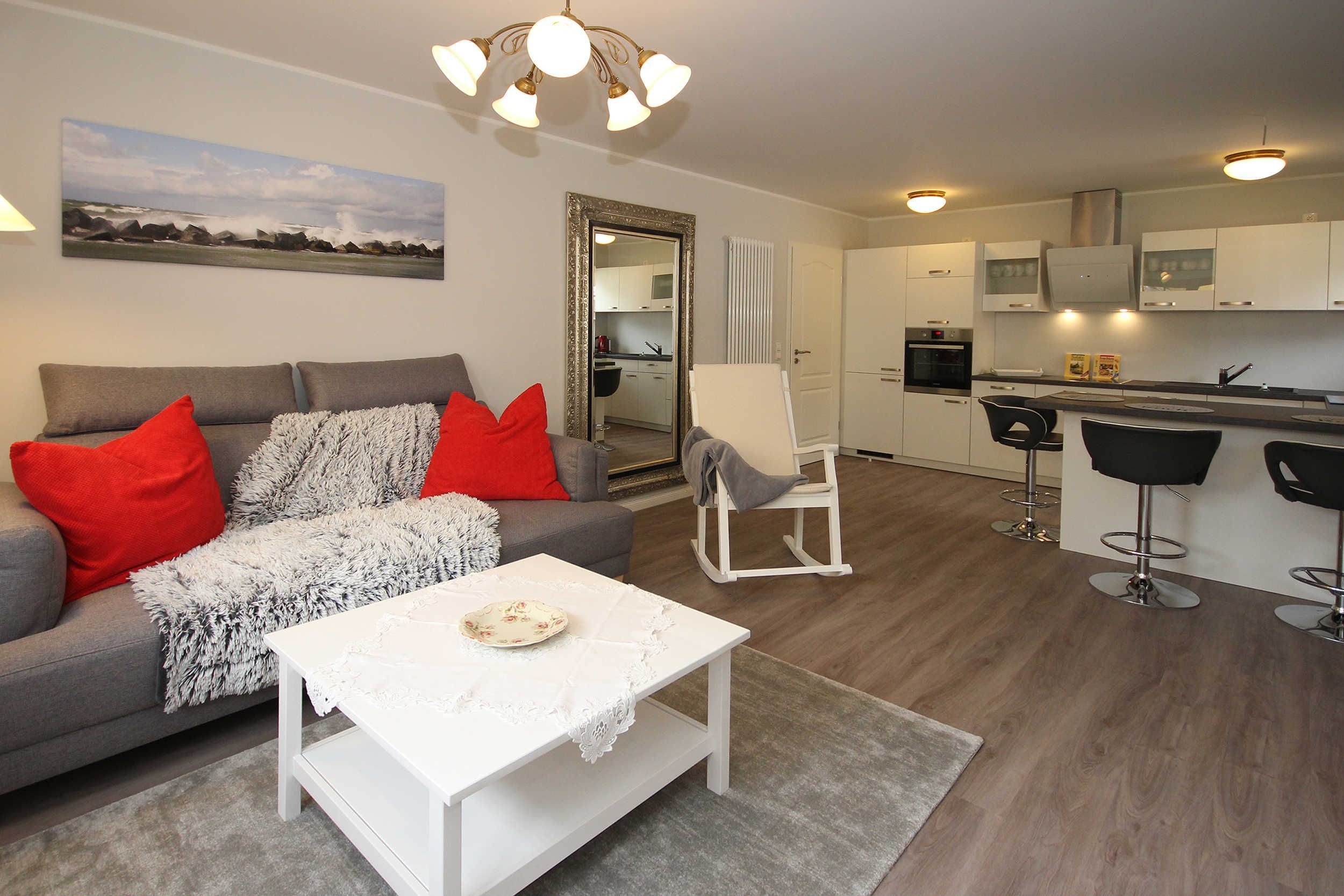 die neue und komfortable Ferienwohnung mit liebevoller Ausstattung zum Detail und separatem Eingang liegt im Erdgeschoss. Genießen Sie die Ostseitige Terrasse mit einer gemütlichen Sitzecke auf der Terrasse, beim Frühstück oder lassen Sie den Abend am Strand in 250 m Entfernung ausklingen.Das Wohnzimmer verfügt über eine gemütliche Couch, kostenlosen WLAN- Gastzugang und SAT-TV. An das Wohnzimmer schließt sich die offene Küchenzeile an und lädt Sie zum Kochen ein und ist ausgestattet mit einer Kühl- Gefrierkombination, Cerankochfeld und Backofen in Augenhöhe. Das separate Schlafzimmer verfügt über ein Doppelbett 1,80 x 2,00 m ((durchgehende Matratzen)  und einem Kleiderschrank mit viel Stauraum.In der Ferienwohnung ist die Bettwäsche nicht vorhanden, die Handtücher können in der Zimmervermittlung für 7,00 € pro Person (1 Badetuch, 1 Handtuch) dazugebucht werden. Eine Fußbodenheizung im Bad und einer ebenerdigen Dusche runden das Bild ab. Für unsere Gäste sind die Fahrräder inclusive . Unsere Wohnungen sind Nichtraucherwohnungen. Die Kaution beträgt 100,- € und wird nach Abreise zurücküberwiesen.