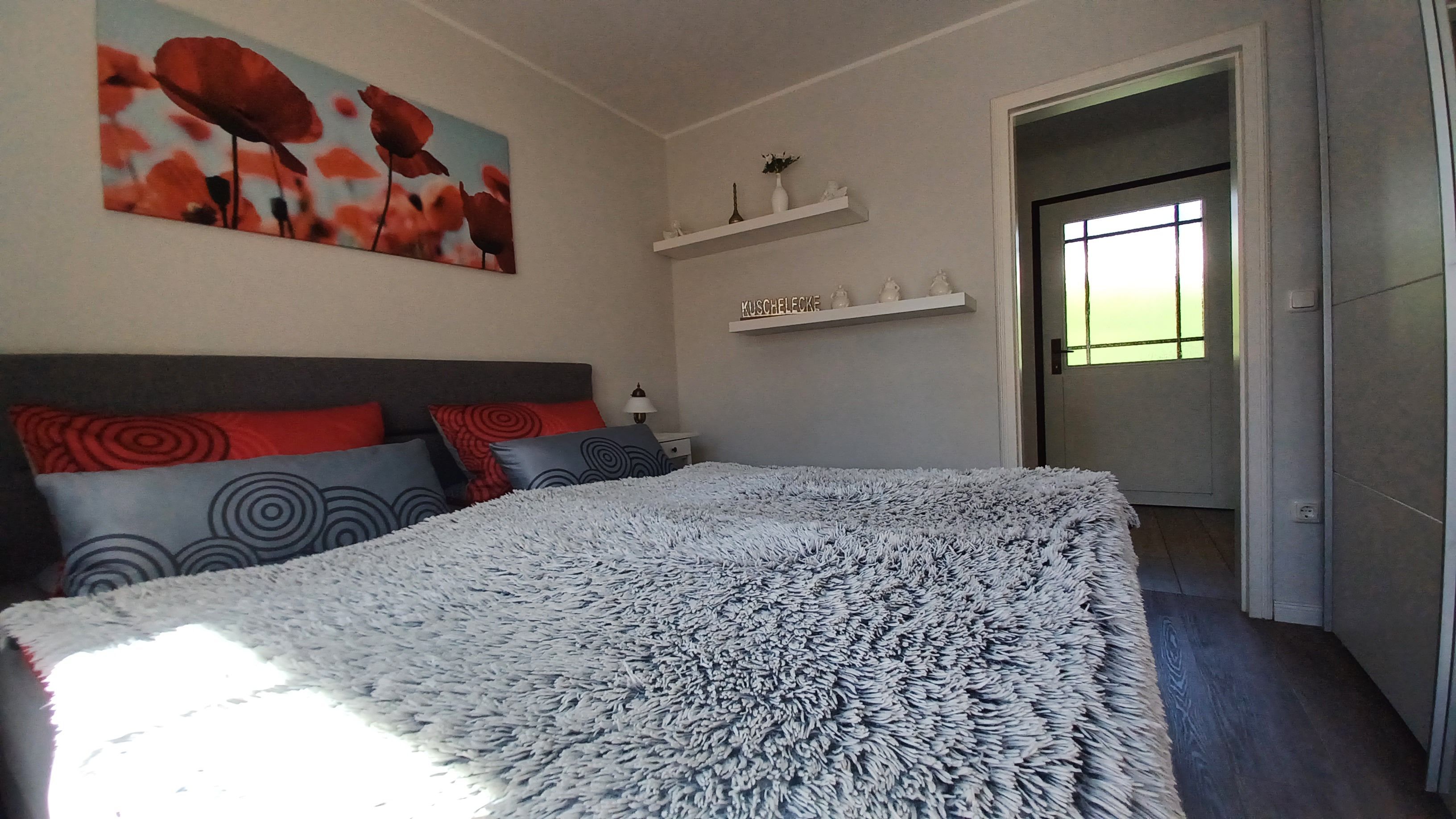 Ausstattung: Bad mit DU/WC: 1, Fön, Doppelbett: 1, Fliegengaze, Küchenzeile, Mikrowelle, Kühl- Gefrierkombination, Kaffeemaschine, Toaster, Wasserkocher, CD- Player, Radio, Digital- TV, Heizung, separater Eingang