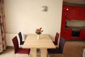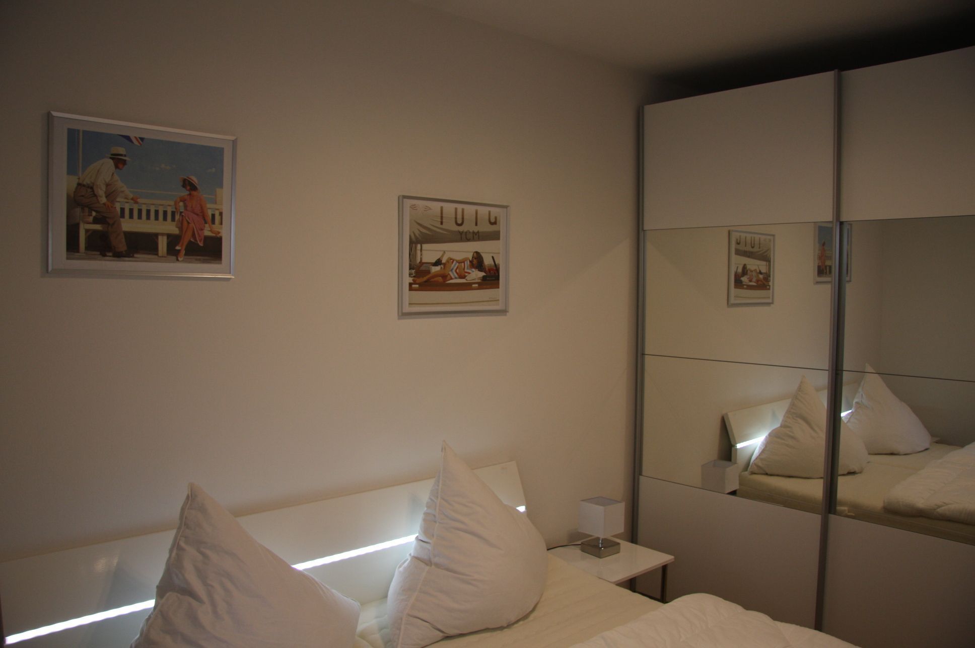 Die in 2014 neu gestaltete, 55 qm große Souterrain-Wohnung verfügt über zwei getrennte Schlafzimmer und eignet sich deshalb sowohl für Familien, als auch für zwei Paare: ein Zimmer mit Doppelbett und ein weiteres mit zwei Einzelbetten, die zusammen gestellt werden können, einem Badezimmer, einem hellen offenen Wohn- und Essbereich mit Zugang zur Terrasse und einer modernen, komplett ausgestatteten Küche. Die Ferienwohnung ist sehr komfortabel mit Waschmaschine, Geschirrspülmaschine, Parkett und Fußbodenheizung ausgestattet, ein Auto-Stellplatz ist vorhanden.
