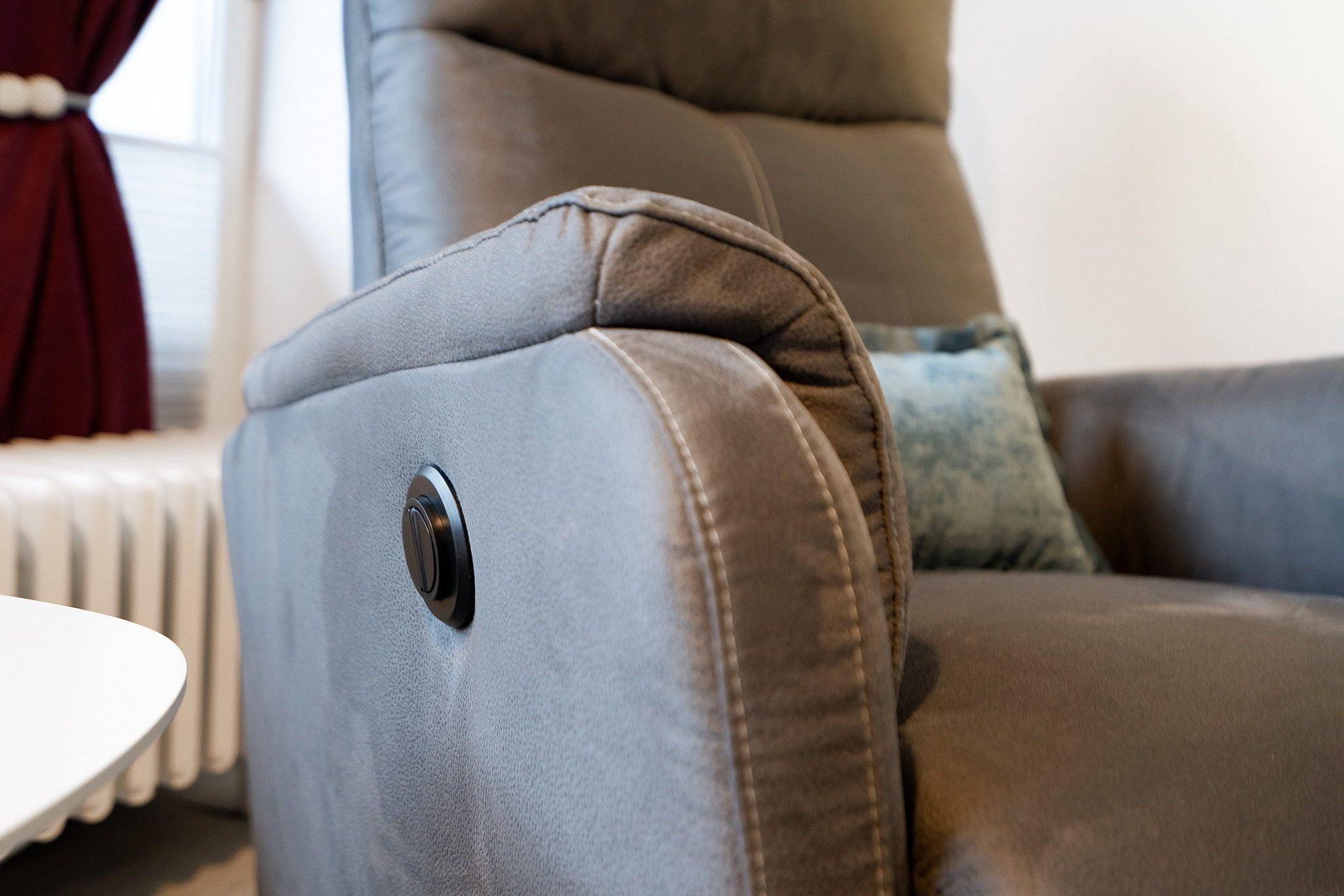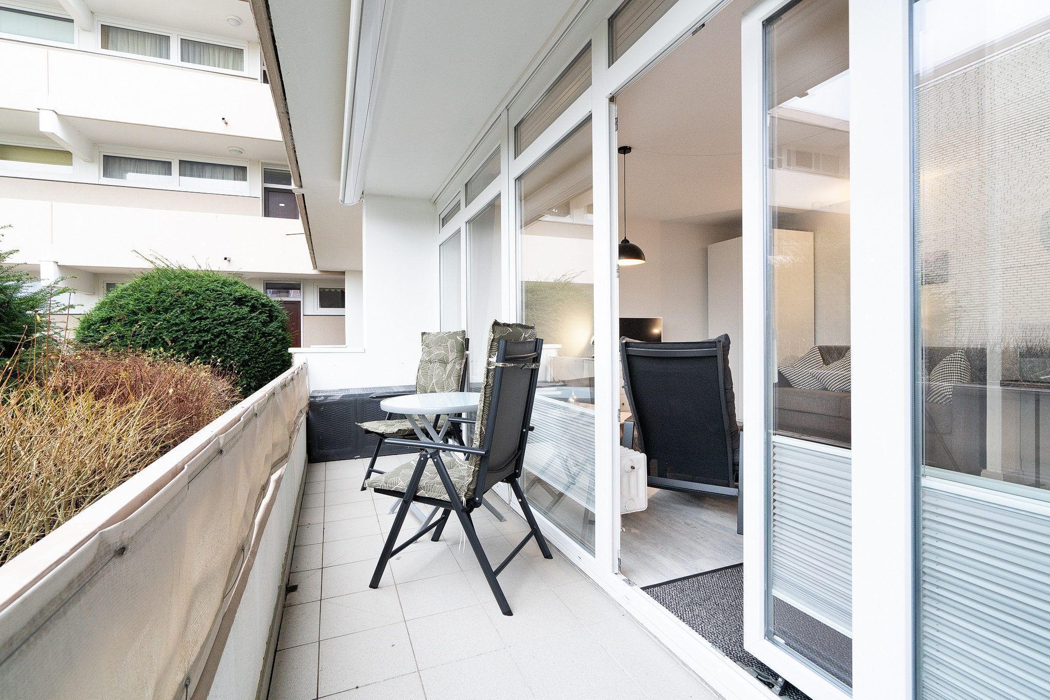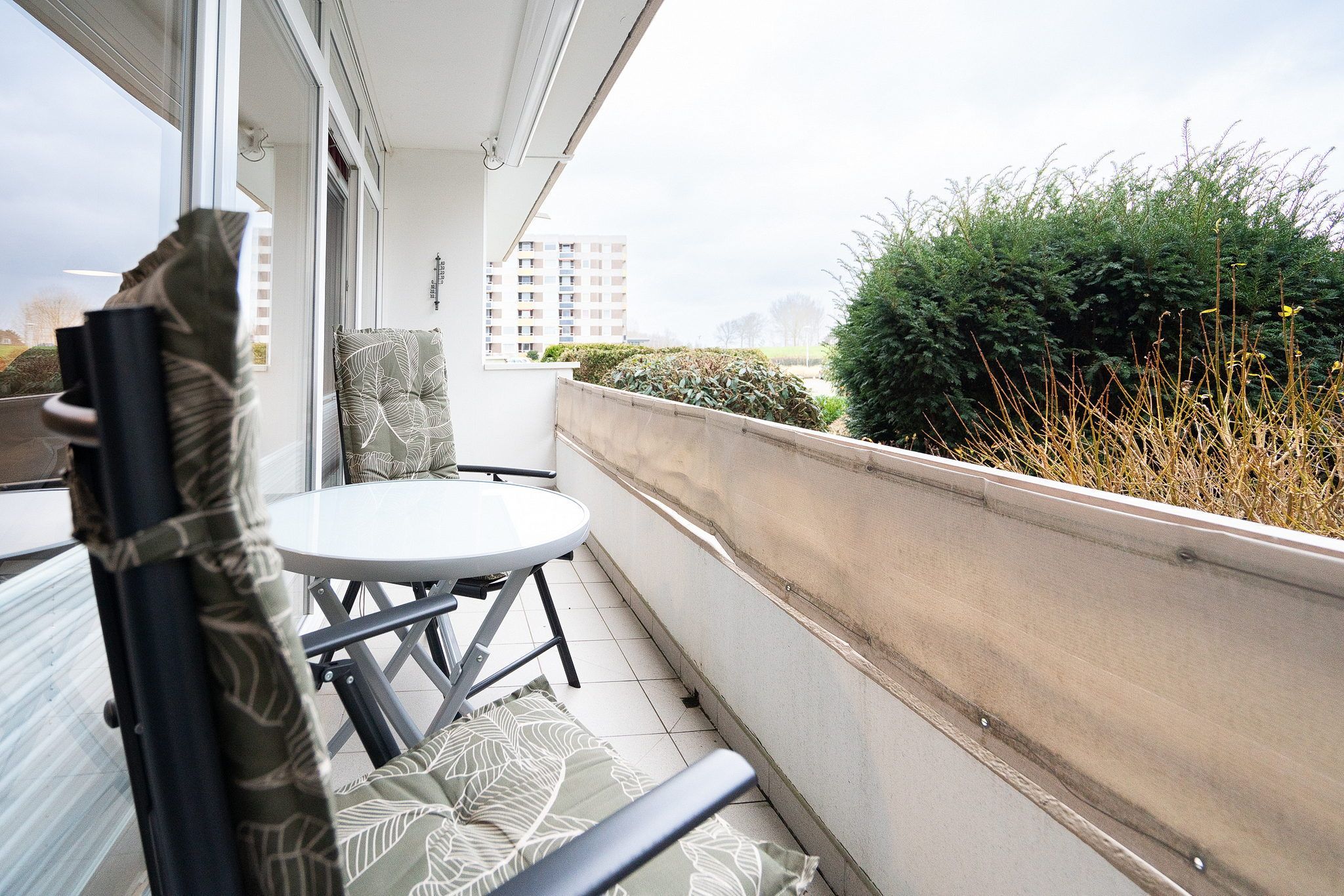 Moderner, freundlicher und heller Wohnbereich mit direktem Zugang zum Balkon. Der Wohnbereich ist mit einem Schlafsofa (150mx200m), 2 Sesseln, einem Couchtisch, einem Essbereich für 2 Personen und einem Kleiderschrank ausgestattet. Zur Unterhaltung steht ein Flachbildschirm zur Verfügung. Die Fenster können verdunkelt werden.