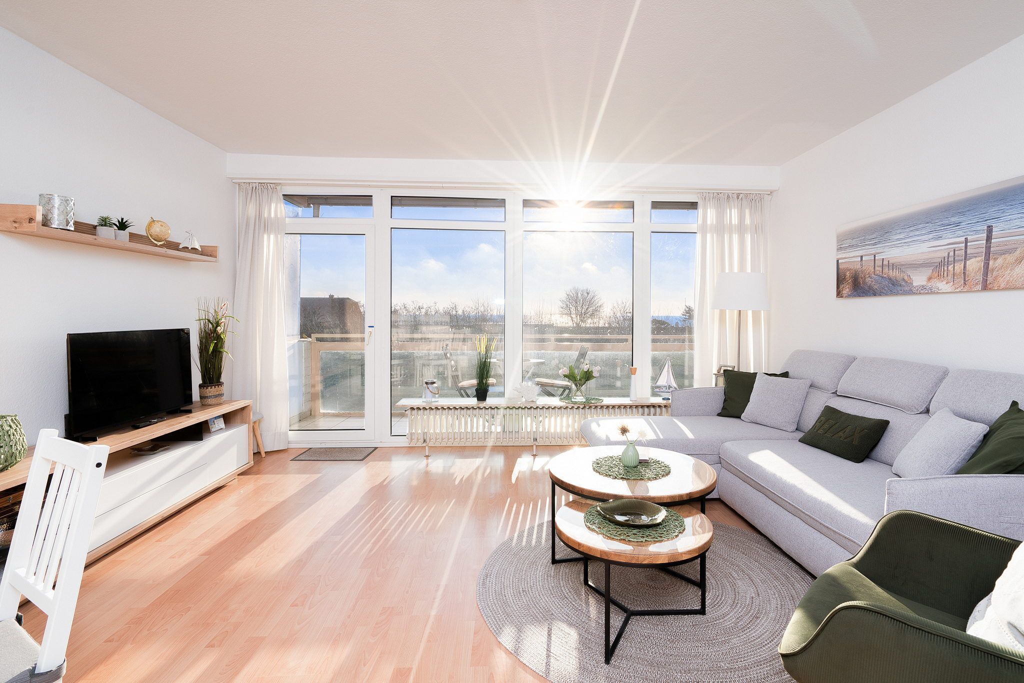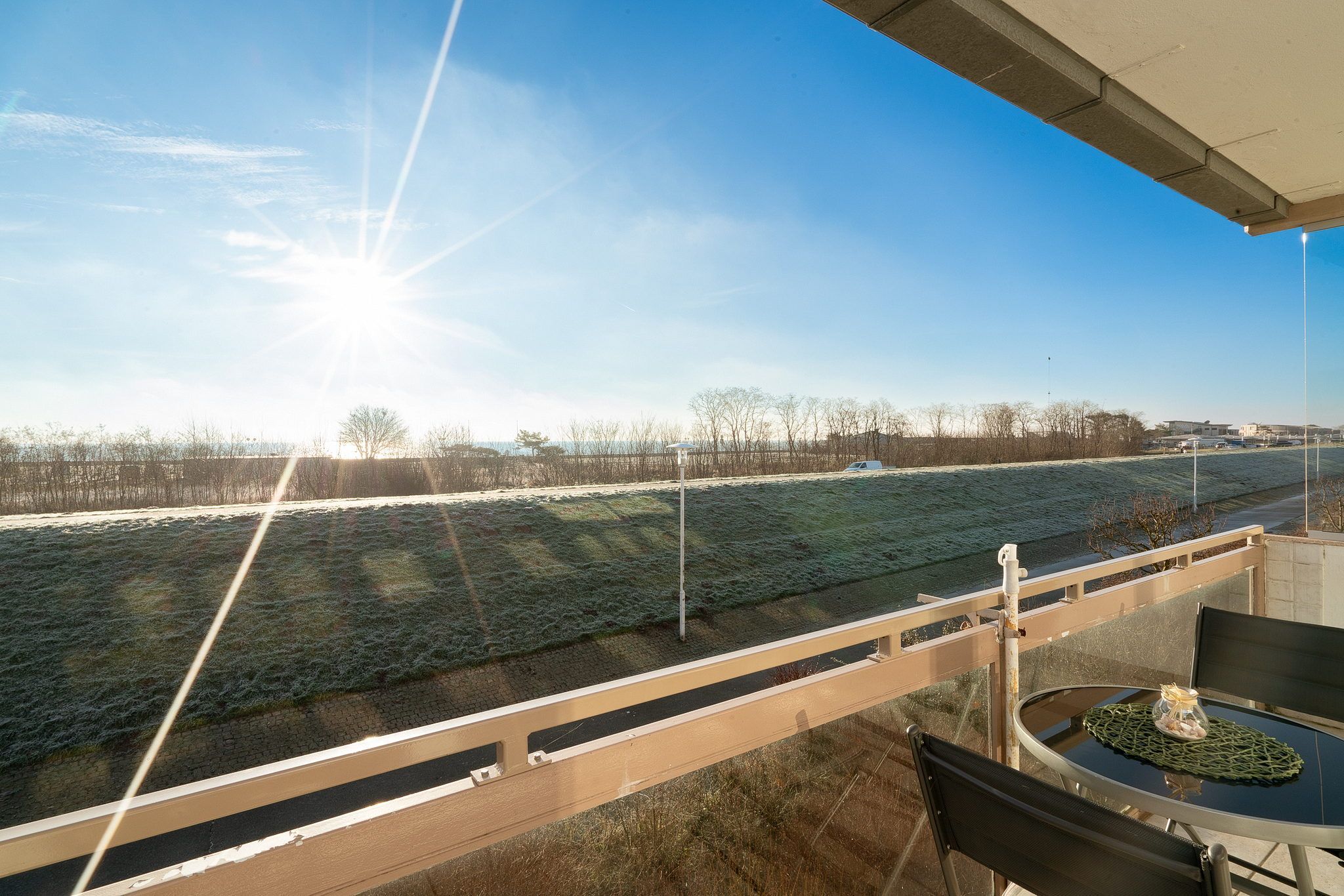 Sonniger Balkon in süd-östliche Richtung mit Blick auf die Ostsee, PKW-Abstellplatz, Fahrradraum, Waschmaschinen und Trockner im Haus (gegen Gebühr).