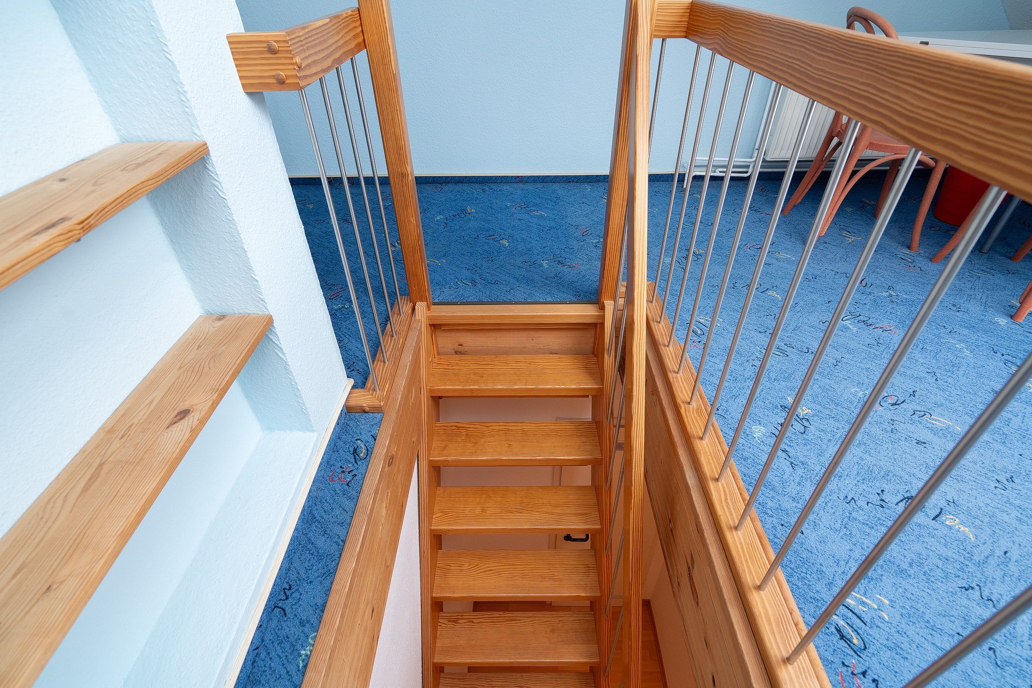 Über eine Treppe gelangen Sie ins Obergeschoss zu den Schlafräumen.