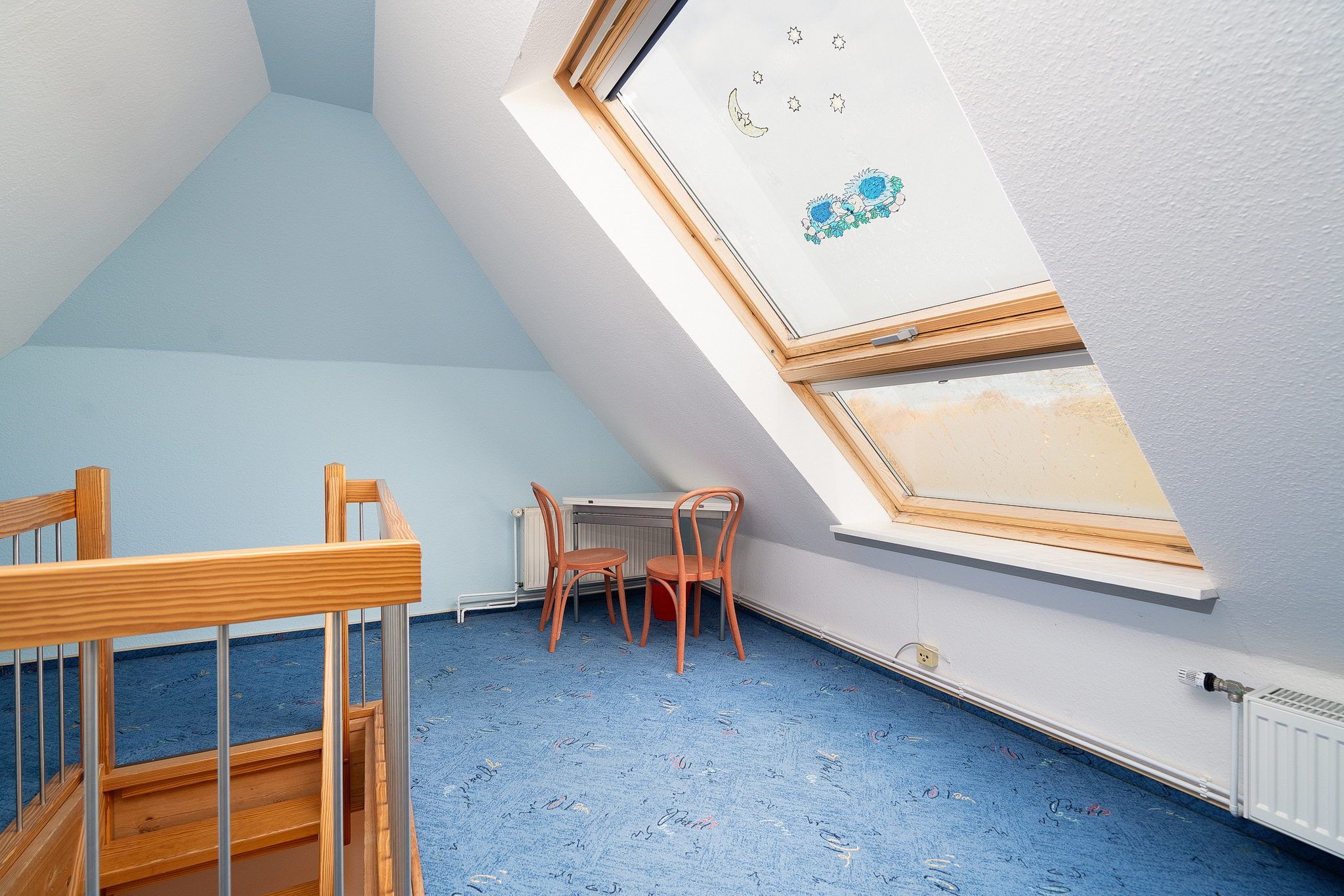 Das Kinderzimmer ist über einer schmale/steile Treppe zu erreichen und ist mit einem Einzelbett (Größe: 120x200cm), einer Kommode und einem Tisch mit 2 Stühlen ausgestattet. Befindet sich im 2. Obergeschoss.