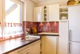 Mitten im Biosphärenreservat Südost-Rügen erwartet Sie eine hochwertige Ferienwohnung mit gemütlichem Wohnzimmer, Kaminofen und Parkettfußboden in der 1. Etage. Die vollausgestattete Küche fügt sich mit dem Esstisch harmonisch in das Wohnzimmer ein. Daneben befindet sich ein Schlafzimmer mit Doppelbett. Ein weiteres Schlafzimmer mit zwei Einzelbetten, die auch zusammenschiebbar sind, befindet sich auf dem Dachboden ( Deckenhöhe in der Spitze ca 1,65m). Das großzügige Bad ist mit Fußboden, Badewanne und Dusche hell und freundlich eingerichtet.