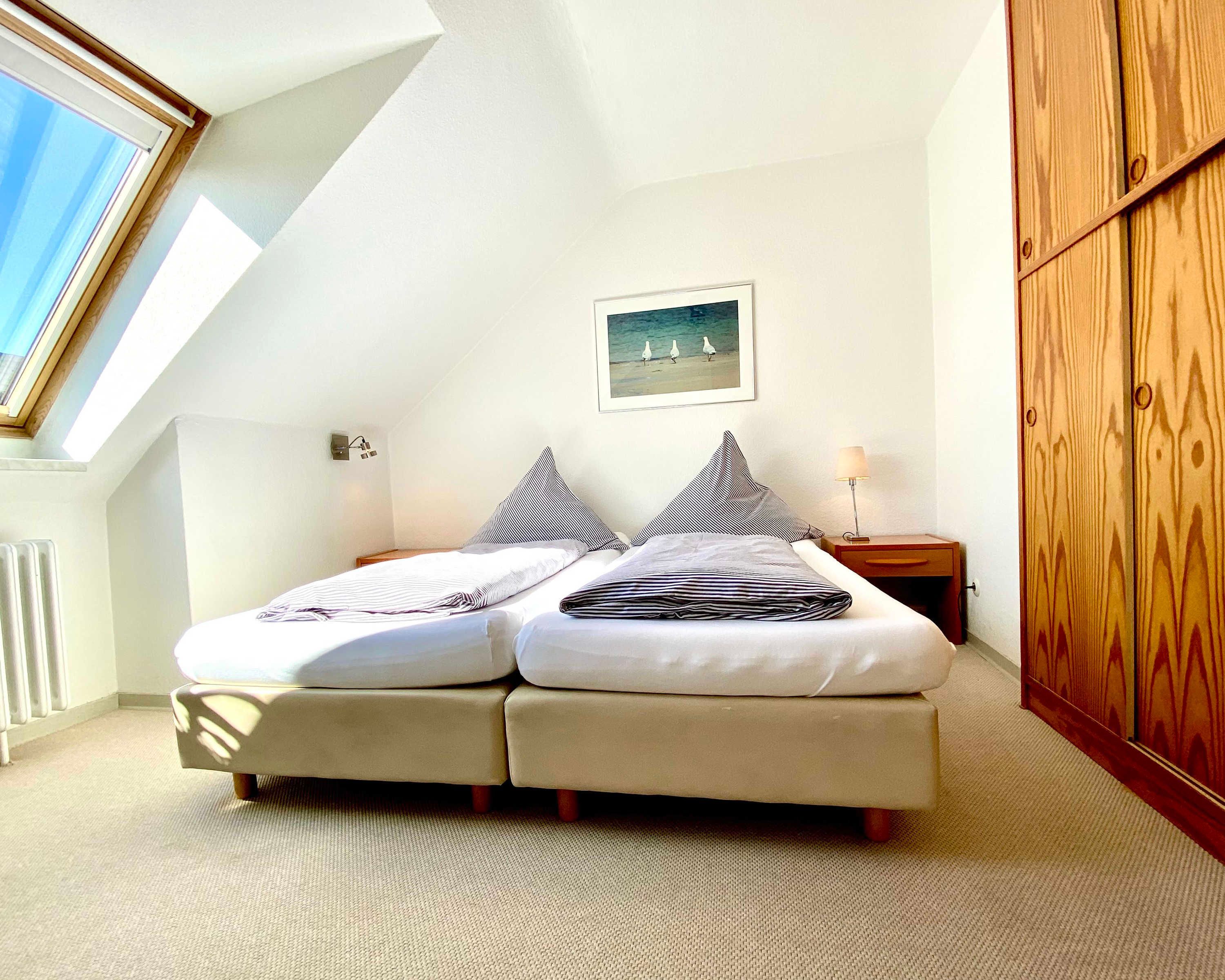 Die Ferienwohnung Germania befindet sich im Obergeschoß des gleichnamigen Hauses im Oberland. Sie ist aufgeteilt in einen Schlafbereich und einen Wohn-/Essbereich mit Küche. Die Wohnung liegt zur Inselseite.