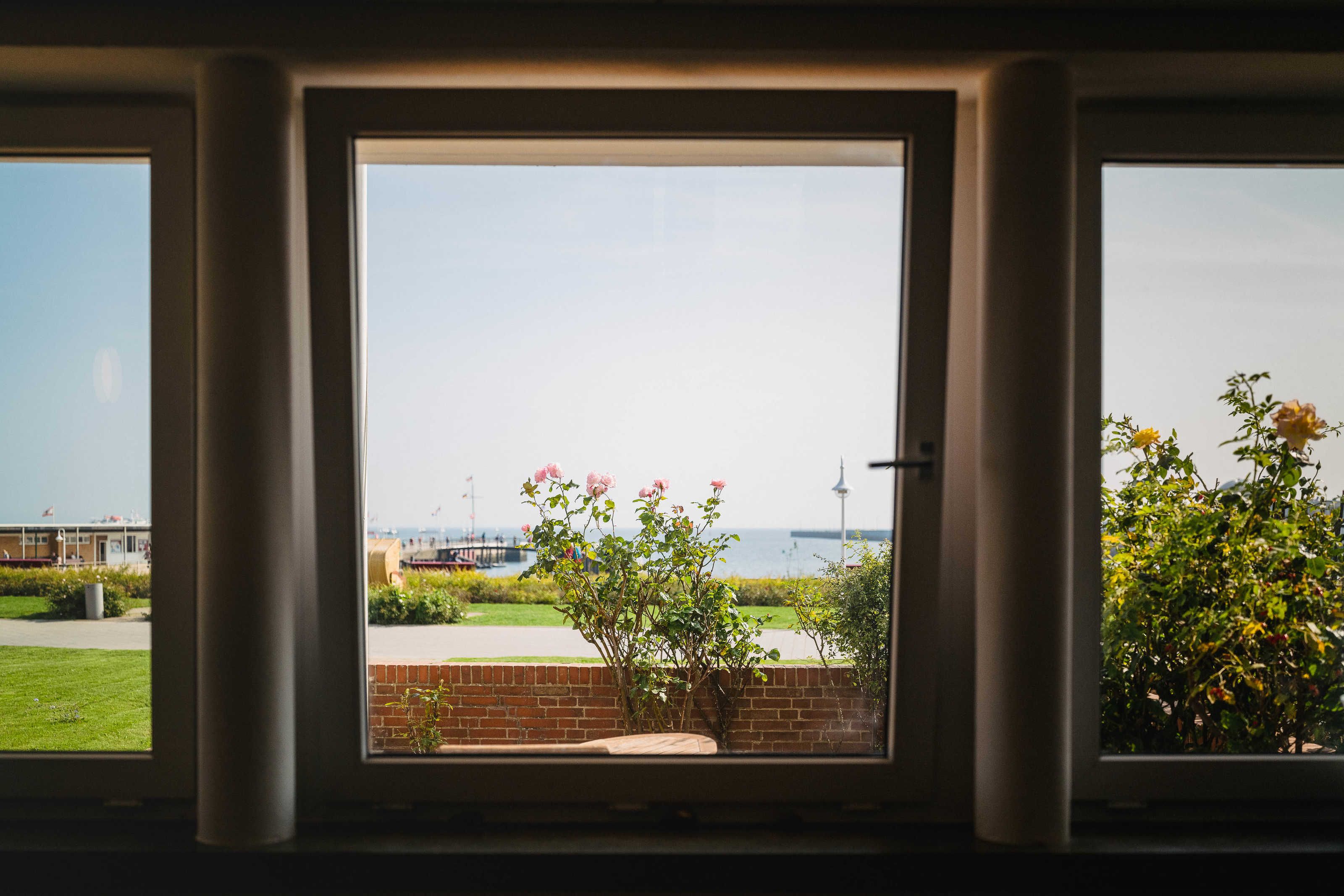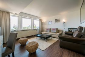 Die Ferienwohnung befindet sich im Erdgeschoß im Haus Roland am Südstrand 14. Sie ist zur Seeseite gelegen.