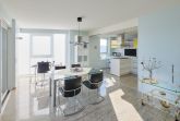 Die offene Einbauküche, die von 2 Seiten begehbar ist, ist ein Paradies für Hobbyköche und bietet alles, was Sie brauchen: einen Geschirrspüler, ein Cerankochfeld, einen Kühlschrank mit Gefrierfach sowie ein Weinregal. Ein zusätzlicher Fernseher sorgt dafür, dass Sie auch vom Essbereich aus bequem fernsehen können. Am Küchentresen mit zwei Stühlen können Sie entspannt frühstücken und sich aus der zusätzlichen Kaffeepadmaschine ein Kaffee zubereiten, bevor Sie gemeinsam am Esstisch Platz nehmen, der bis zu vier Personen bequem Platz bietet und einen wunderbaren Panoramablick, wie aus dem gesamten Wohn- Ess- und Küchenbereich in Richtung Seeseite bietet.