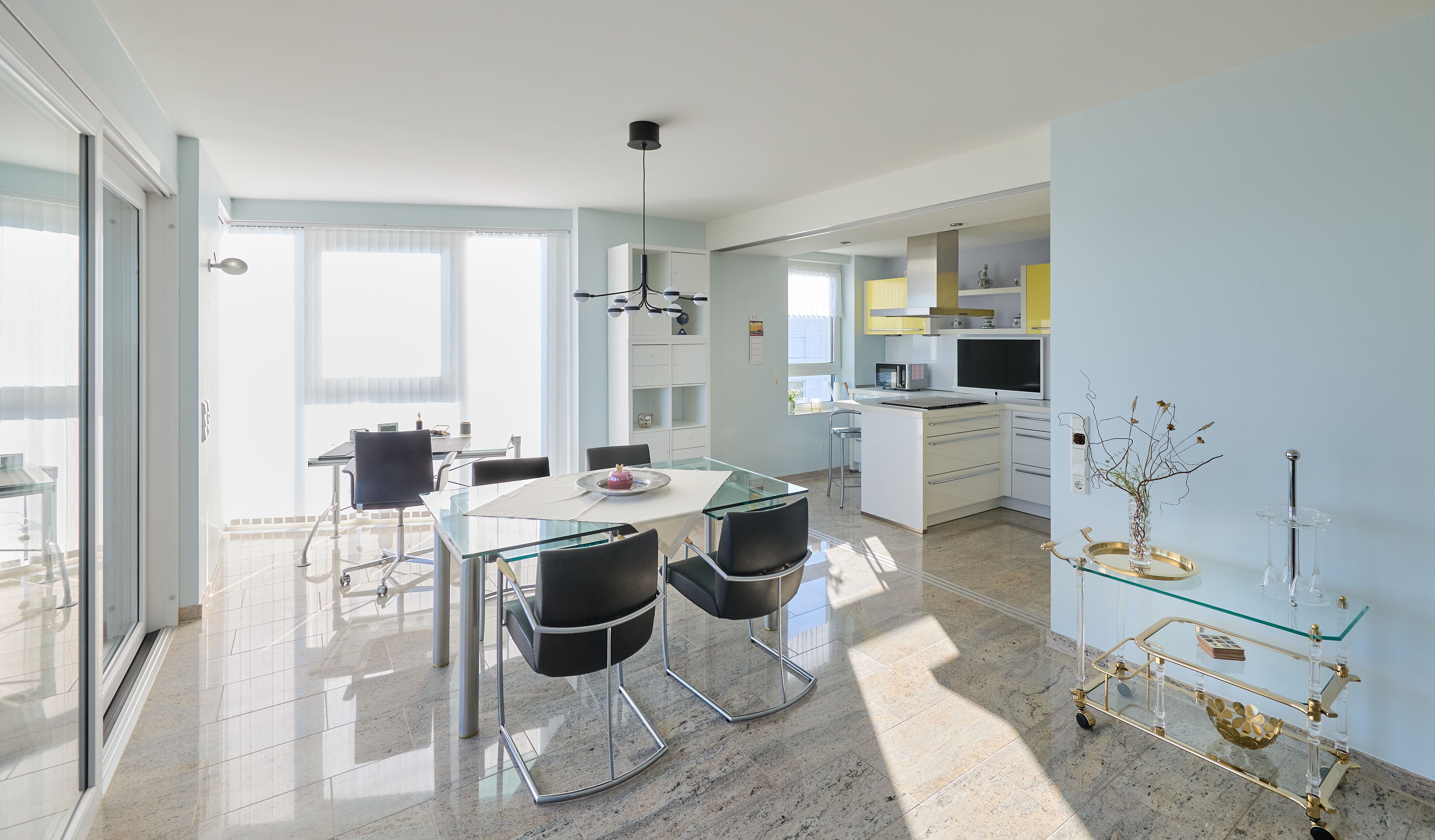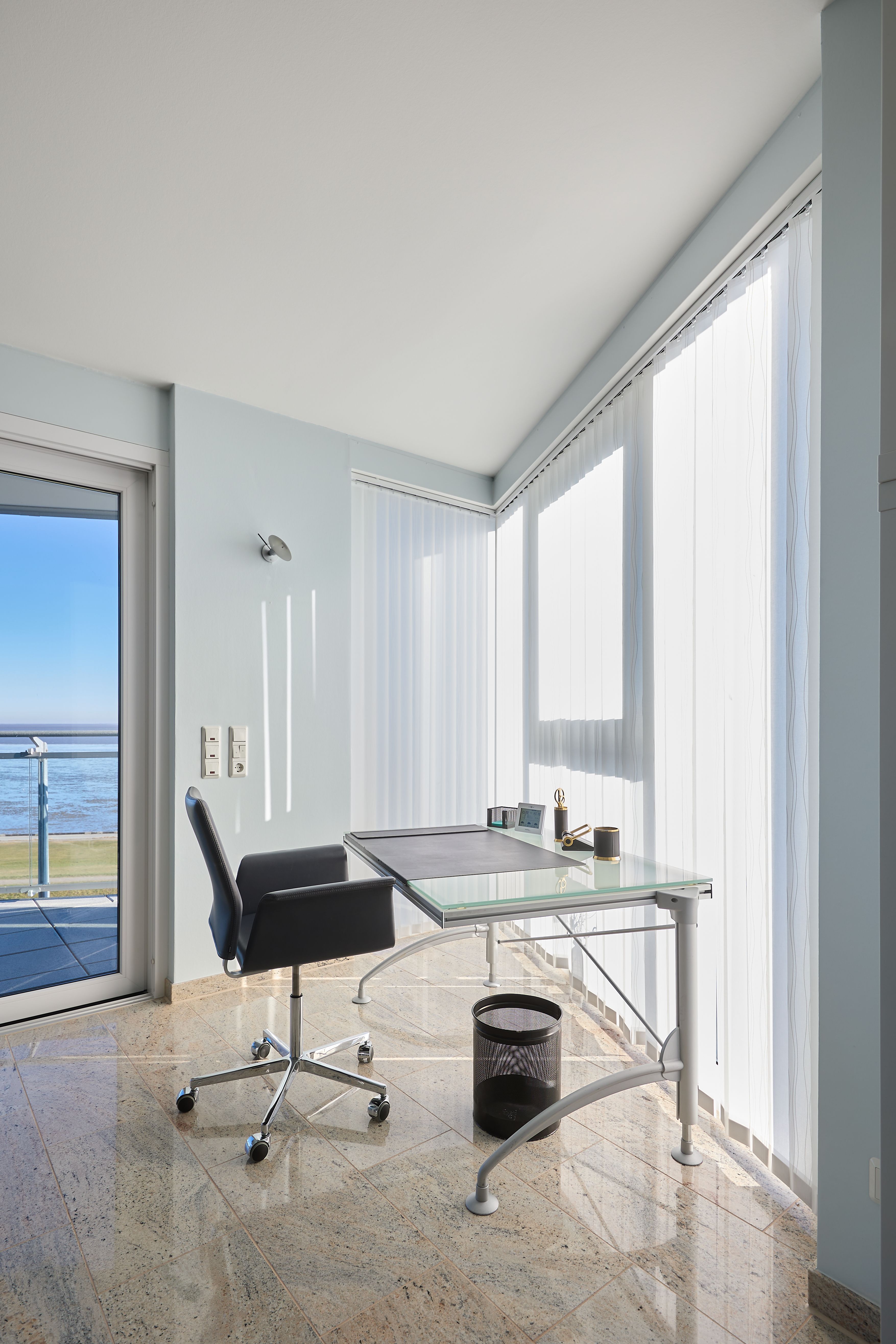 Für unsere Gäste, die auch im Urlaub ihrer Arbeit oder ihrem Hobby nachgehen möchten, steht ein heller Arbeitsplatz mit Sonnenschutz zur Verfügung. Ein Schreibtisch mit einem Bluetooth-fähiger Drucker, sorgen dabei für zusätzlichen Komfort. Darüber hinaus befindet sich in der Wohnung ein großer Safe, der auch Ihre Wertsachen sicher verschließen lässt.
