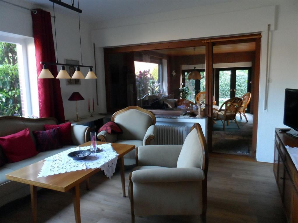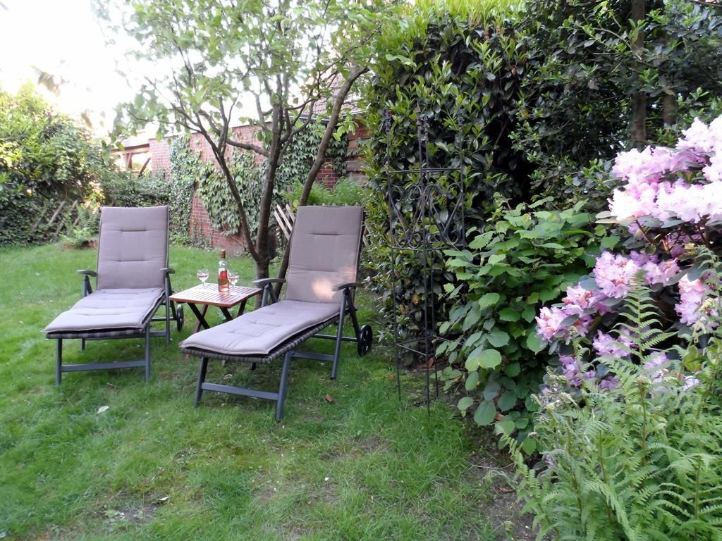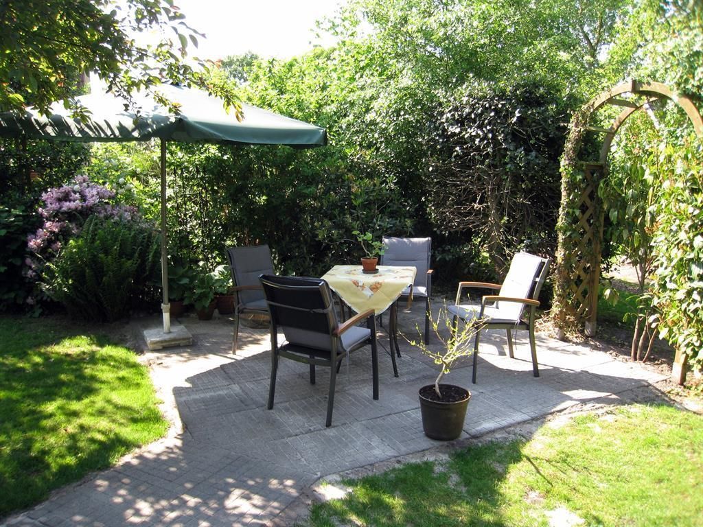 Unser gemütliches Ferienhaus liegt zentrumsnah in einer Einfamilienhaussiedlung direkt am Ostfriesland-Wanderweg. Es verfügt über einen großen Garten in ruhiger Südlage mit zwei Sitzecken, eine davon überdacht. Dort kann man Sonne und Natur genießen und die Seele baumeln lassen. Neben Tischen, Stühlen und Sonnenschirm stehen den Gästen auch zwei Rollliegen zu Verfügung. Im angrenzenden Bereich fühlen sich Kaninchen und Hühner wohl, die, wenn gewünscht, auch das tägliche Ei liefern. Zwei Parkplätze stehen am Haus bereit, für Fahrräder gibt es einen Schuppen und eine Möglichkeit zum Waschen und Trocknen von Wäsche besteht auch.