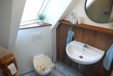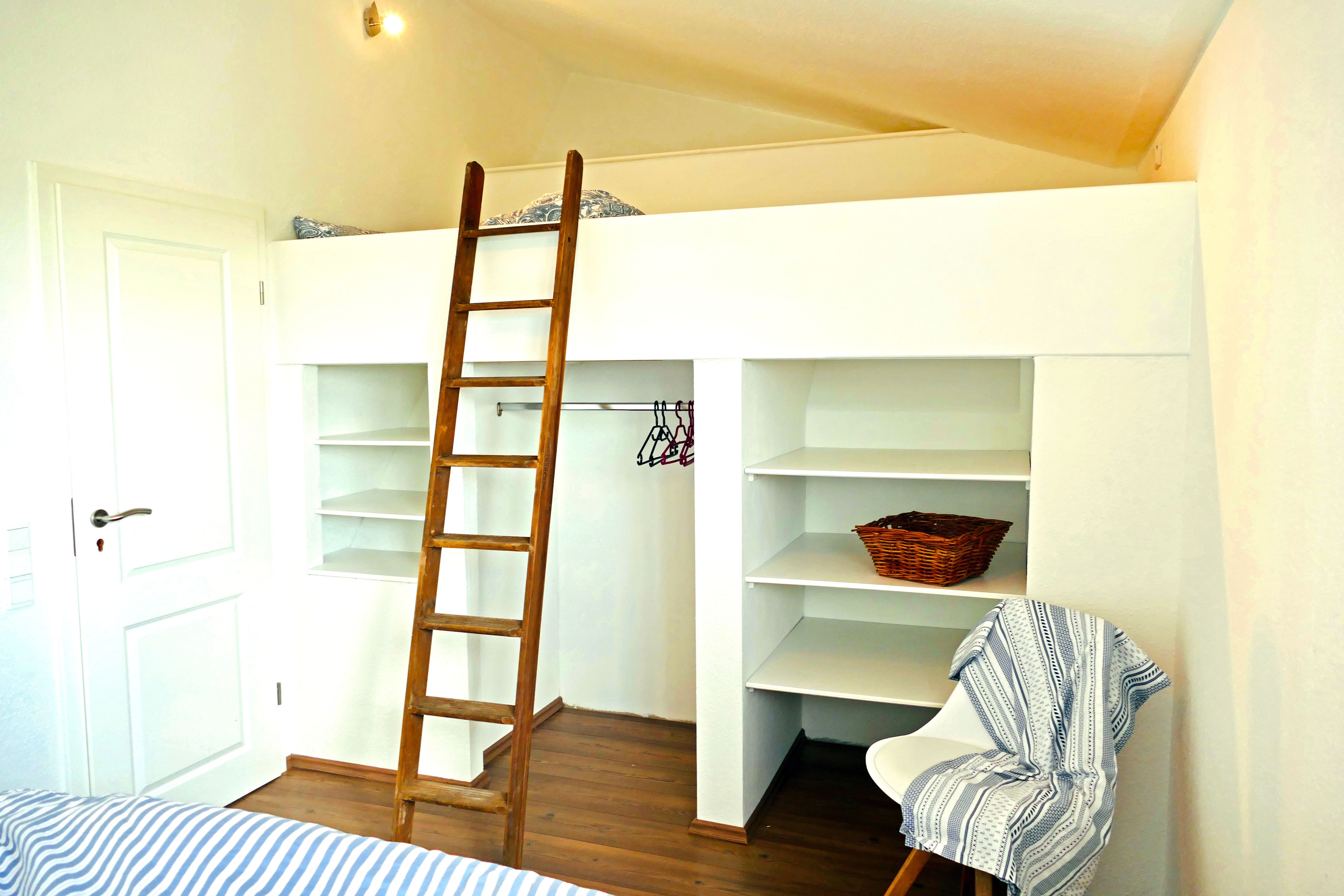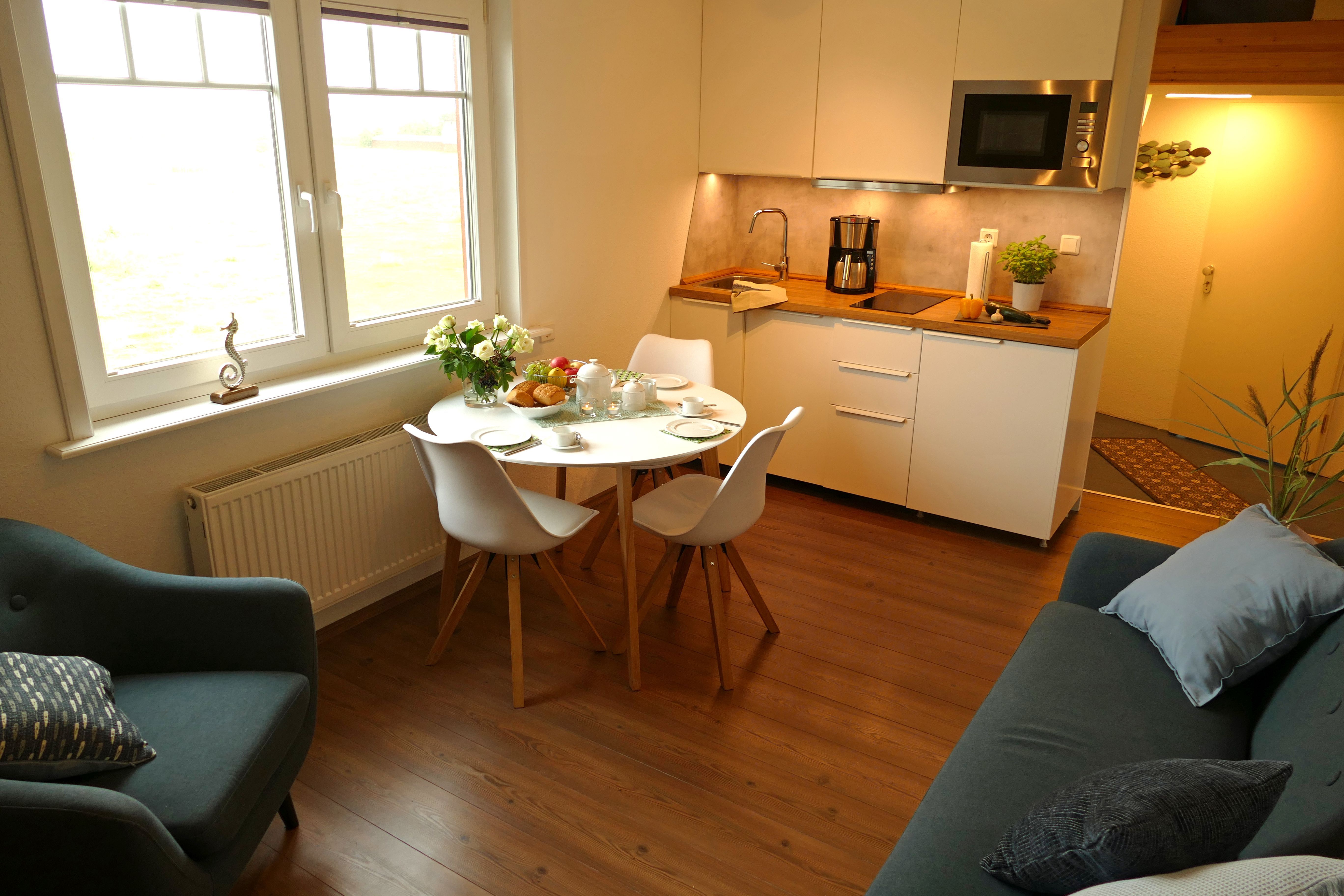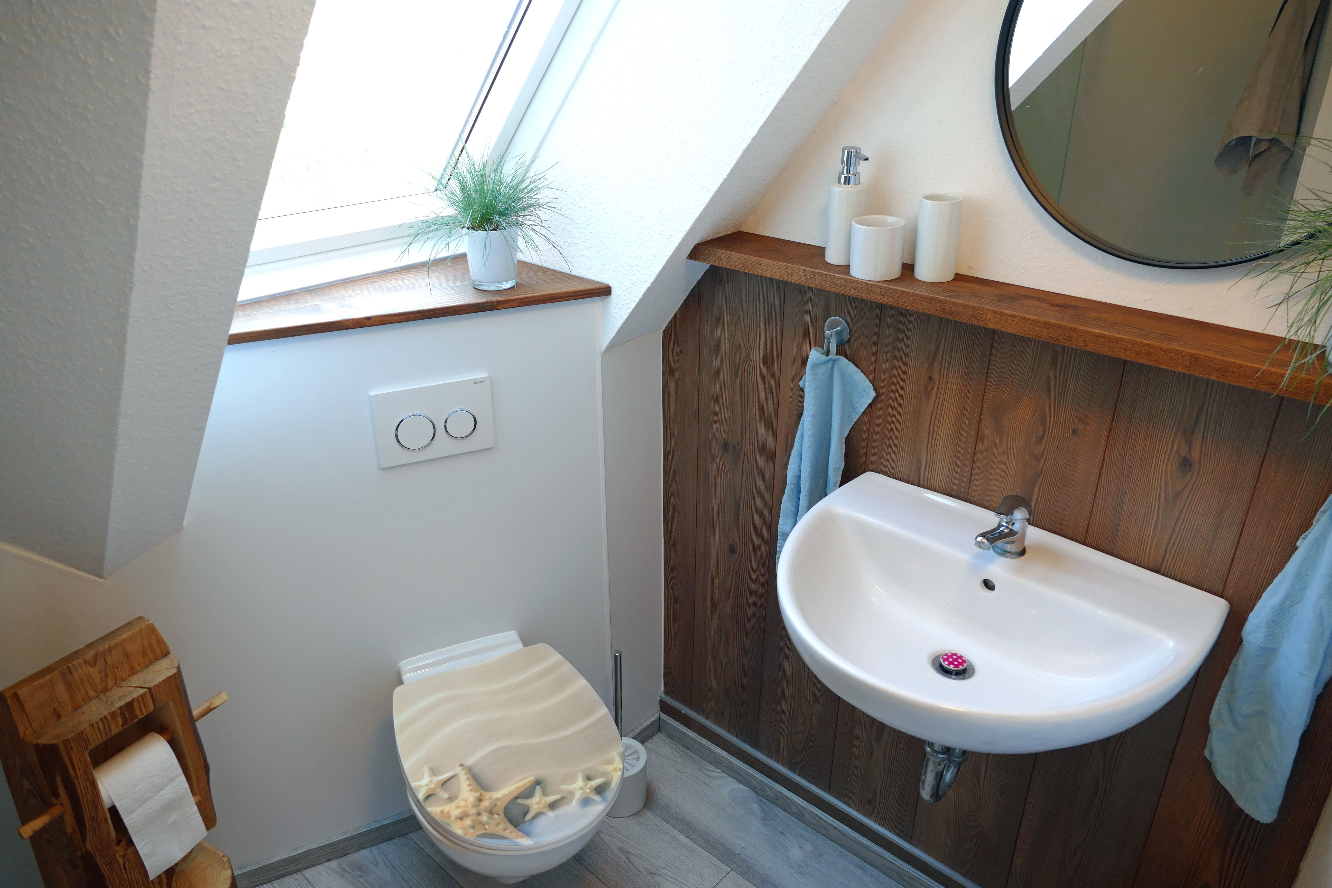 Ihre Ferienwohnung im ersten Stock erreichen Sie ganz bequem über eine separate Außentreppe. Dort erwartet Sie ein großzügiger, einladender Wohnbereich mit gemütlicher Sitzecke und TV perfekt für entspannte Abende. Die angrenzende Essecke und die moderne Einbauküche bieten alles, was Sie für gemeinsame Mahlzeiten benötigen. Zwei liebevoll eingerichtete Schlafzimmer mit komfortablen Doppelbetten sorgen für erholsamen Schlaf. Das Badezimmer ist mit einer Dusche und WC ausgestattet, damit es Ihnen an nichts fehlt.