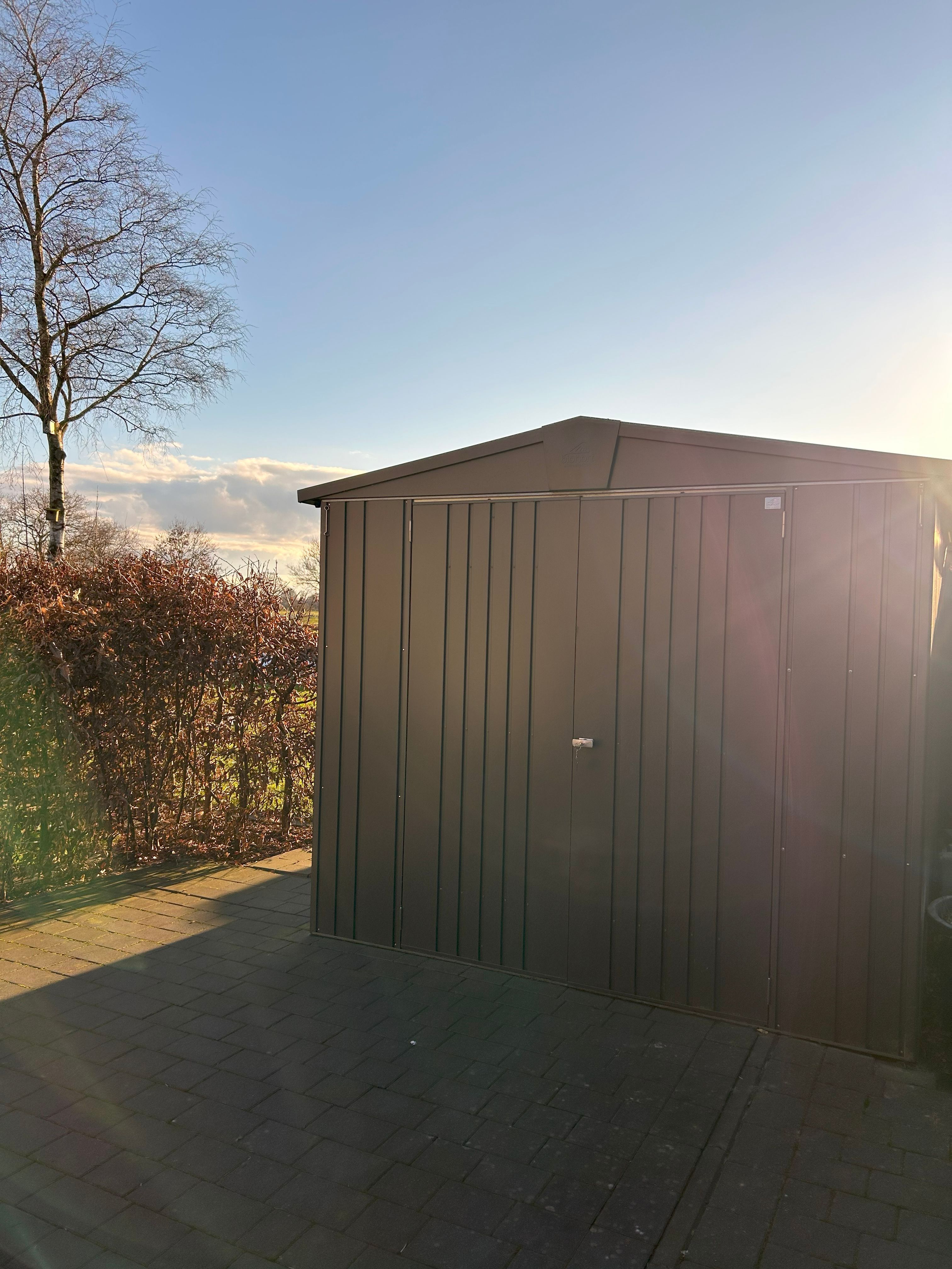 Es steht eine abschließbare Fahrradgarage mit Lademöglichkeit für Ihre E-Bikes, sowie
