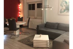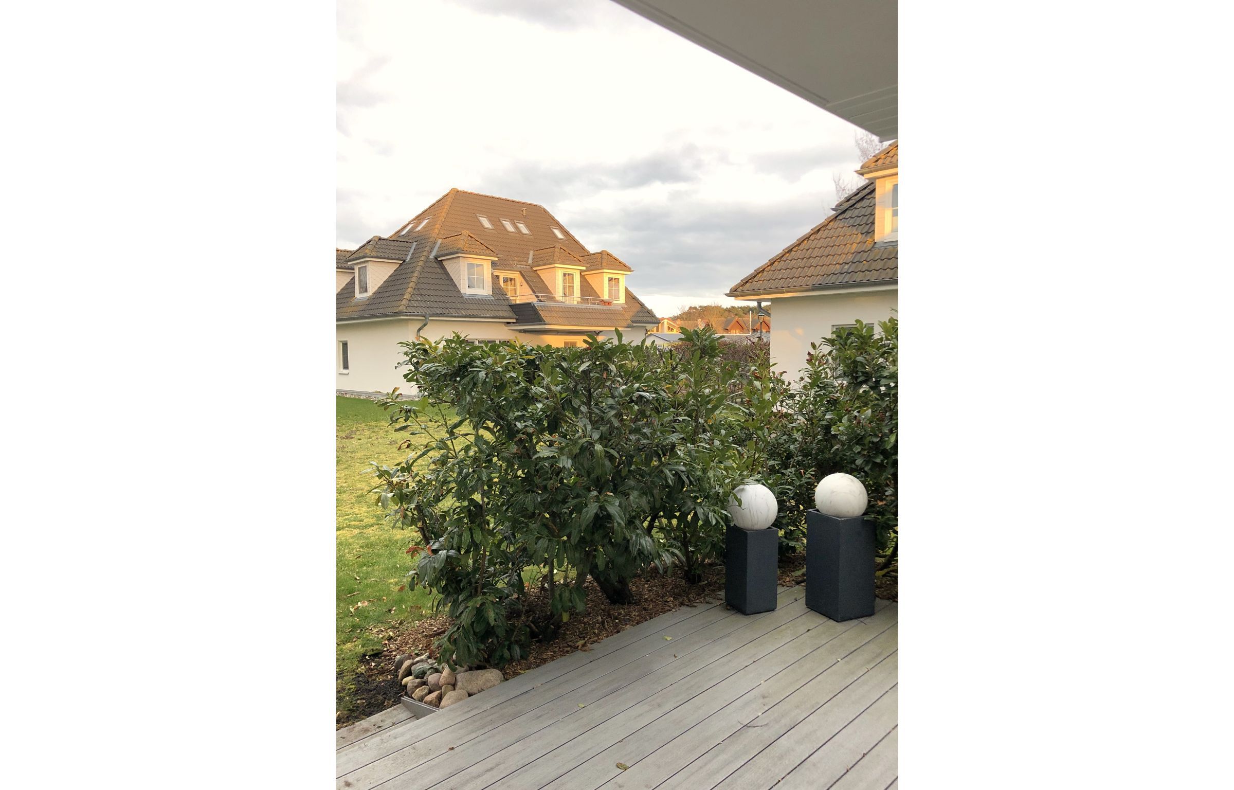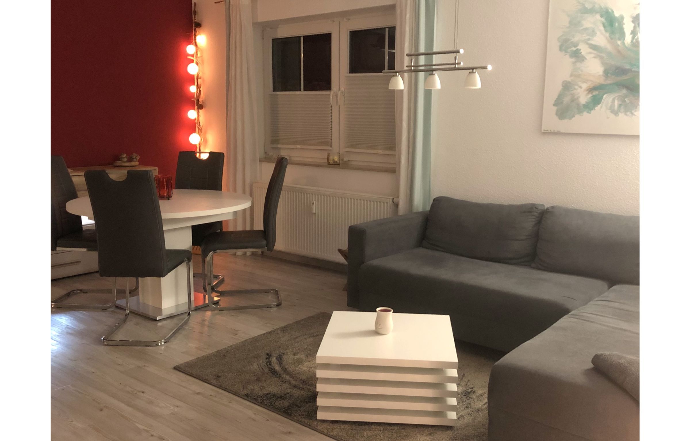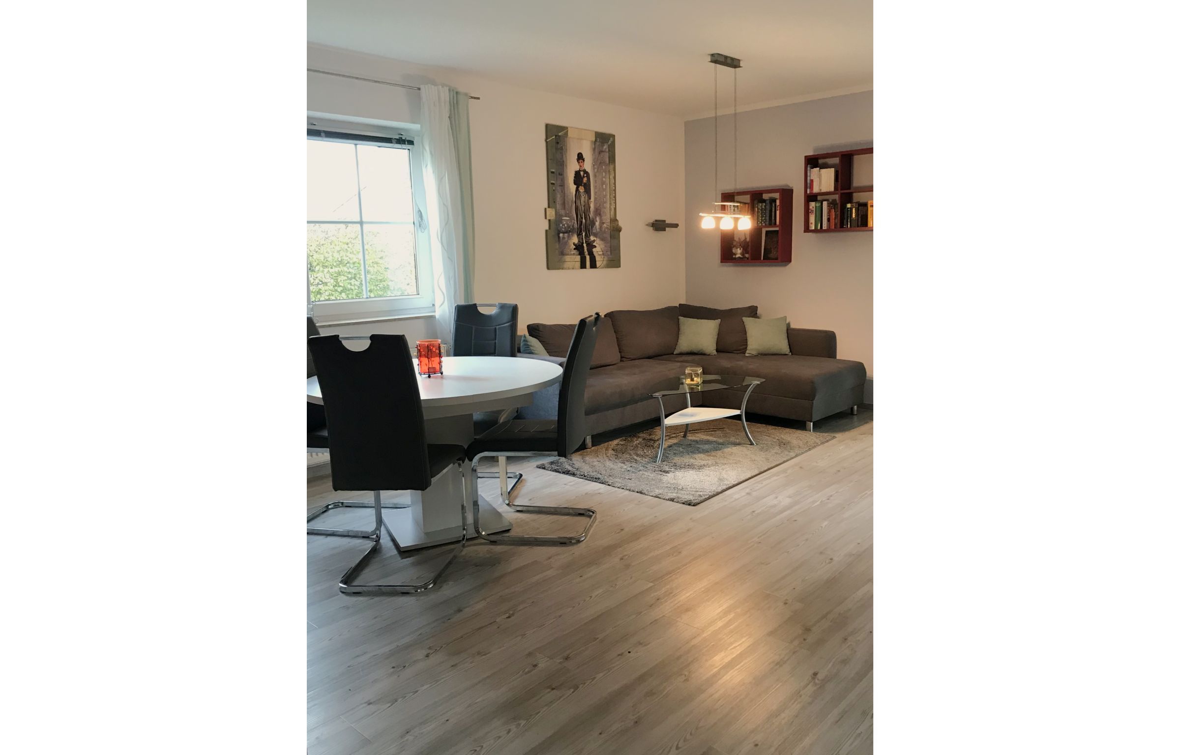 Unsere liebevoll, privat geführte, ca. 68 m² große Nichtraucher-Ferienwohnung ist ebenerdig und besitzt eine Terrasse. Sie befindet sich mit weiteren 3 Wohnungen in einem freistehenden Wohnhaus im Einfamilienhausstil. Sie gehört zu einer Wohnanlage von 4 Wohnhäusern, die unterirdisch mit einer Tiefgarage verbunden sind und oberirdisch in eine großzügige Garten- und Rasenanlage eingebettet sind. Unser Wohnhaus befindet sich in zweiter Baureihe zur kaum befahrenen Spielstraße, an der sich dieser Wohnkomplex befindet. Hier findet man Ruhe und Entspannung. Die Wohnung ist komplett ausgestattet.