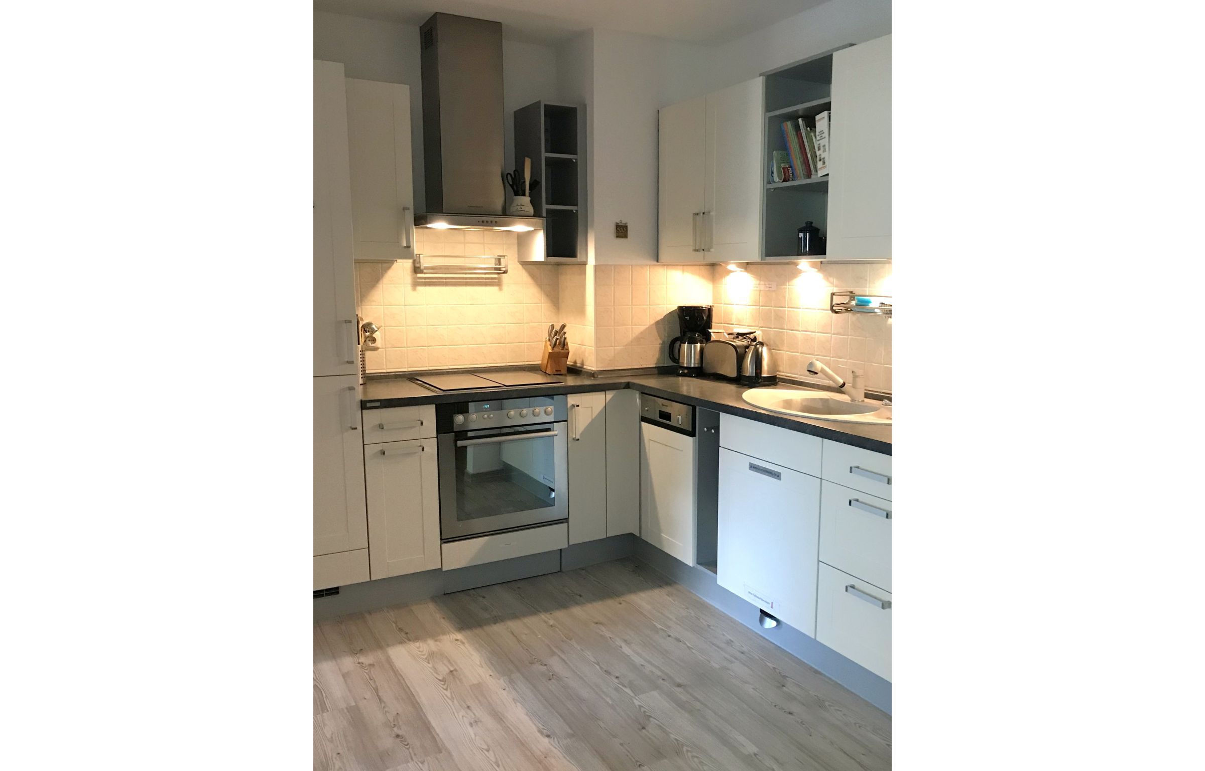 • ein offener Küchenbereich mit Spülmaschine, Ceranfeld, Backofen, Toaster, Wasserkocher, Kaffemaschine, Saftpresse, Kühlschrank, Tiefkühlschrank und viele Kleinigkeiten, die ein entspanntes Handling im Rahmen der Selbstverpflegung ermöglichen und sich damit vom üblichen Standard abheben