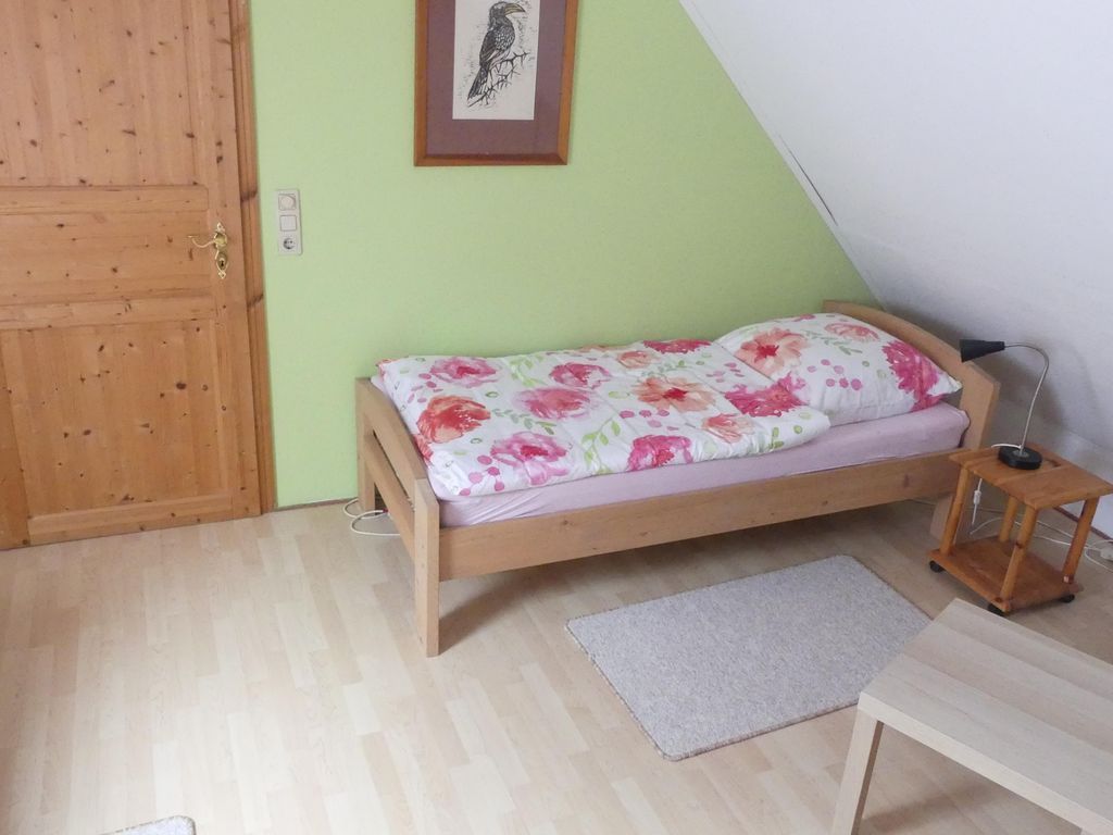 Die Ferienwohnung hat einen separaten Eingang. Zu Ihrer Sicherheit: ein Bewegungsmelder erhellt beim Betreten den Flur, auf halber Treppenhöhe den oberen Teil der Wohnung.