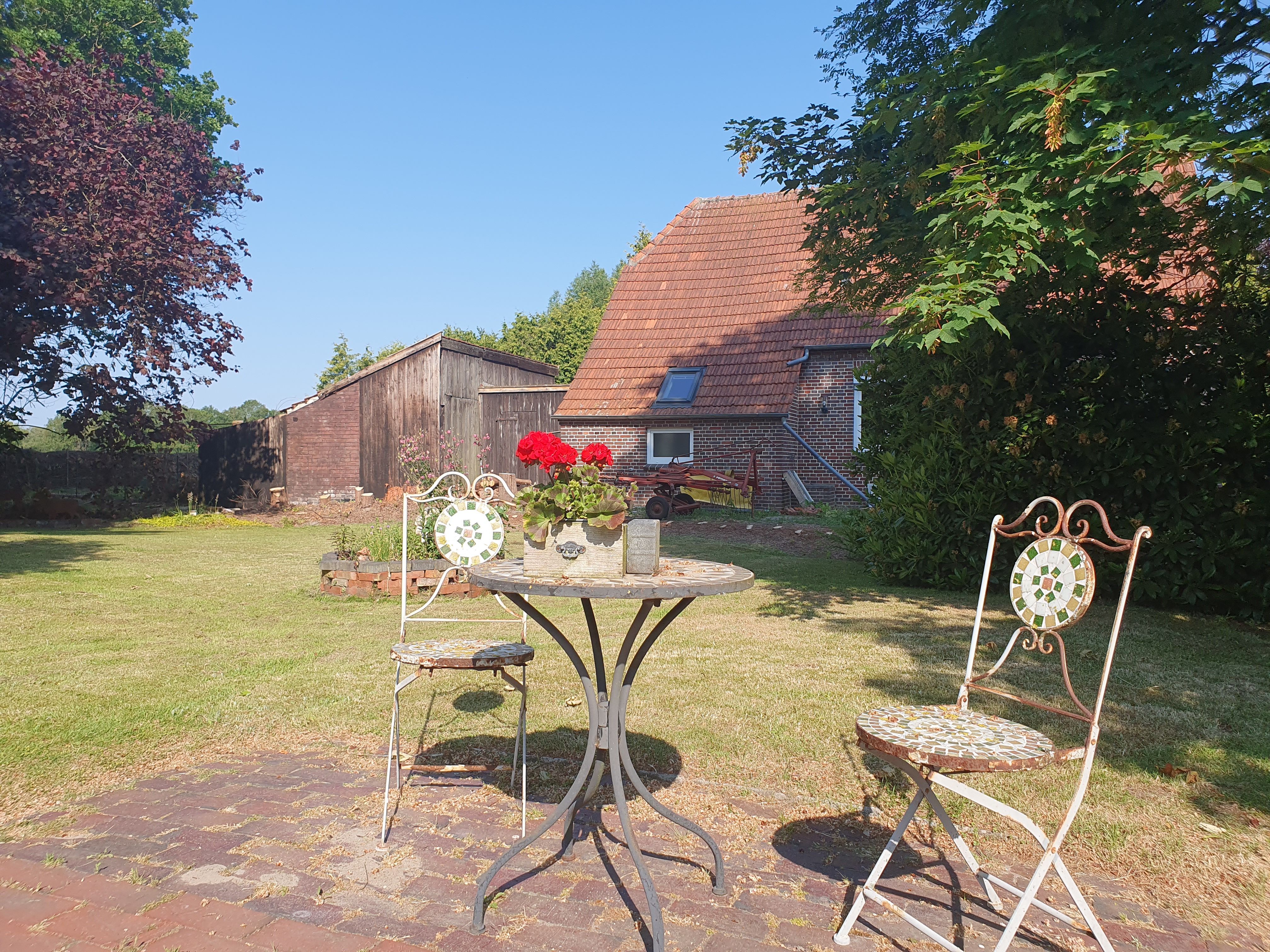 Die Wohnung verfügt über einen separaten Eingang und ist ebenerdig. Das Wohnzimmer verfügt über einen TV mit DVD-Player. Die vollausgestattete Küche mit Essbereich (und Spülmaschine) lässt keine Wünsche offen. Im Schlafzimmer mit Boxspringbett lässt es sich ideal entspannen. Das Badezimmer ist mit einer Dusche und WC ausgestattet. Im Garten steht Ihnen ein Grill, Gartenliegen sowie ein Strandkorb zur Verfügung. Ihre Fahrräder können Sie in einen abschließbaren Schuppen sicher verstauen.