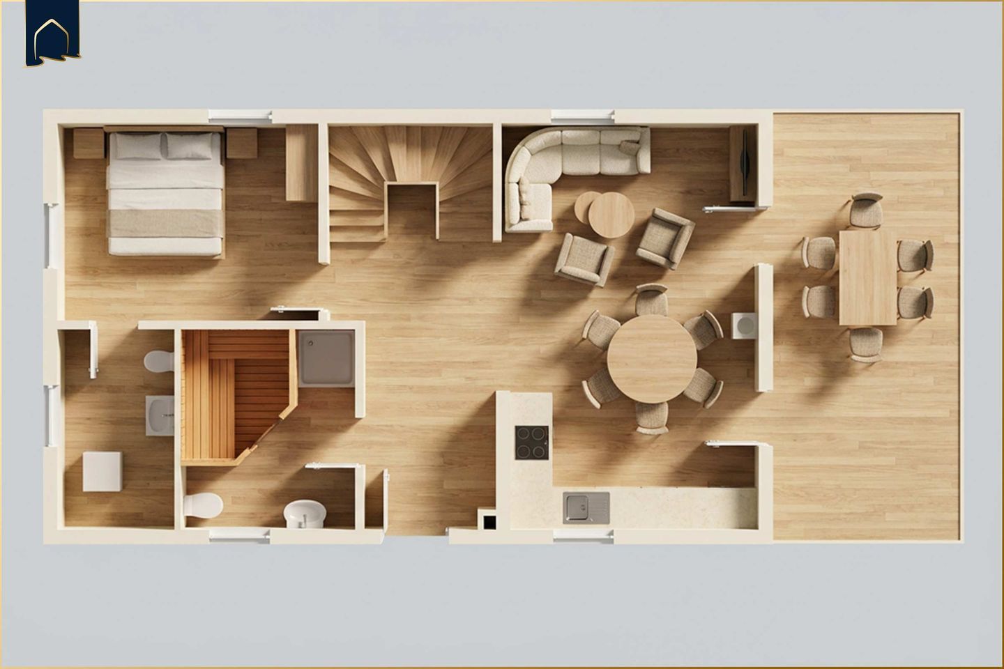 Das Haus erstreckt sich über zwei Etagen und bietet Platz für bis zu 6 Personen. Drei gemütliche Schlafzimmer, zwei moderne Badezimmer mit Dusche und Badewanne sowie eine voll ausgestattete Küche mit Backofen, Gefrierfach, Geschirrspüler und Kaffeemaschine lassen keine Wünsche offen. In der hauseigenen Sauna kannst du nach einem aktiven Tag wunderbar entspannen. WLAN, Smart-TV (2 Stück), Fußbodenheizung sowie ein großzügiger Wohn- und Essbereich mit Sofa und Esstisch sorgen für zusätzlichen Komfort.