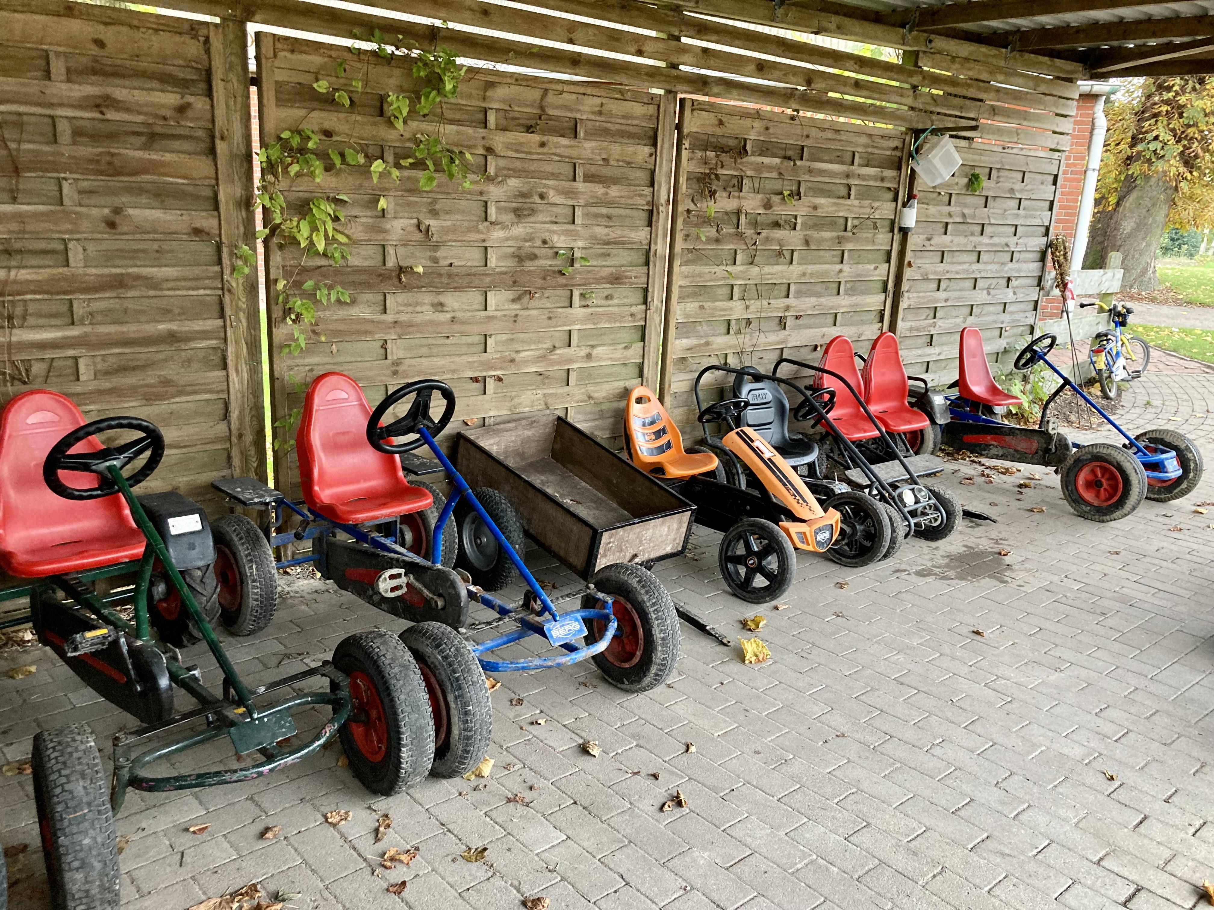 Gönnen Sie sich umgeben von Grün eine kleine Auszeit - unser großer Garten mit Terrasse und Gartenhäuschen lädt zum Entspannen und Erholen ein. Für unsere kleinen Urlauber gibt es einen Spielplatz in unserem Garten und außerdem steht noch ein großer Fuhrpark von Trettraktoren über Laufräder bis hin zu Kettcars zur Verfügung.